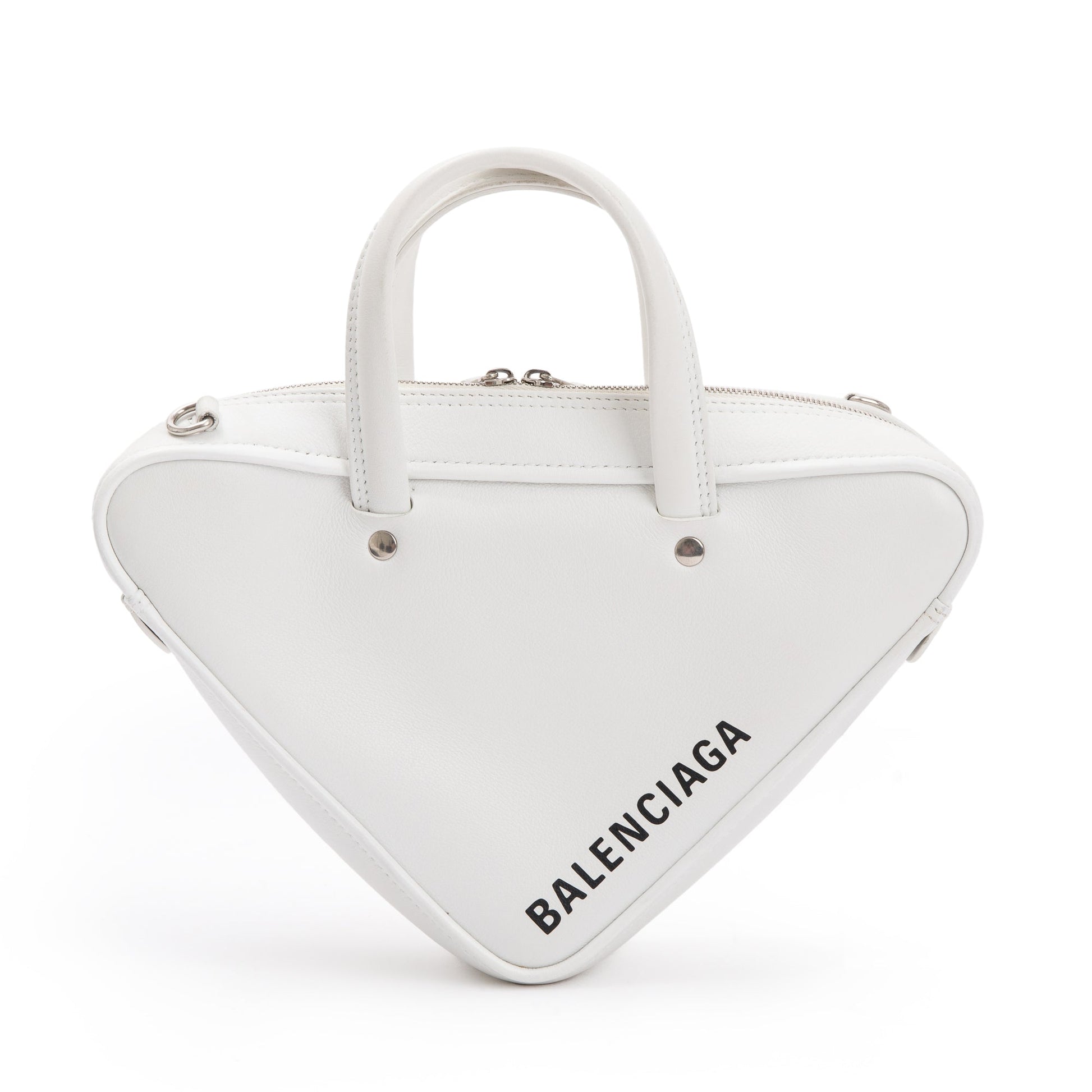 Balenciaga 2020 White Calfskin Leather Triangle S Duffle Bag w/ Strap & Receipt