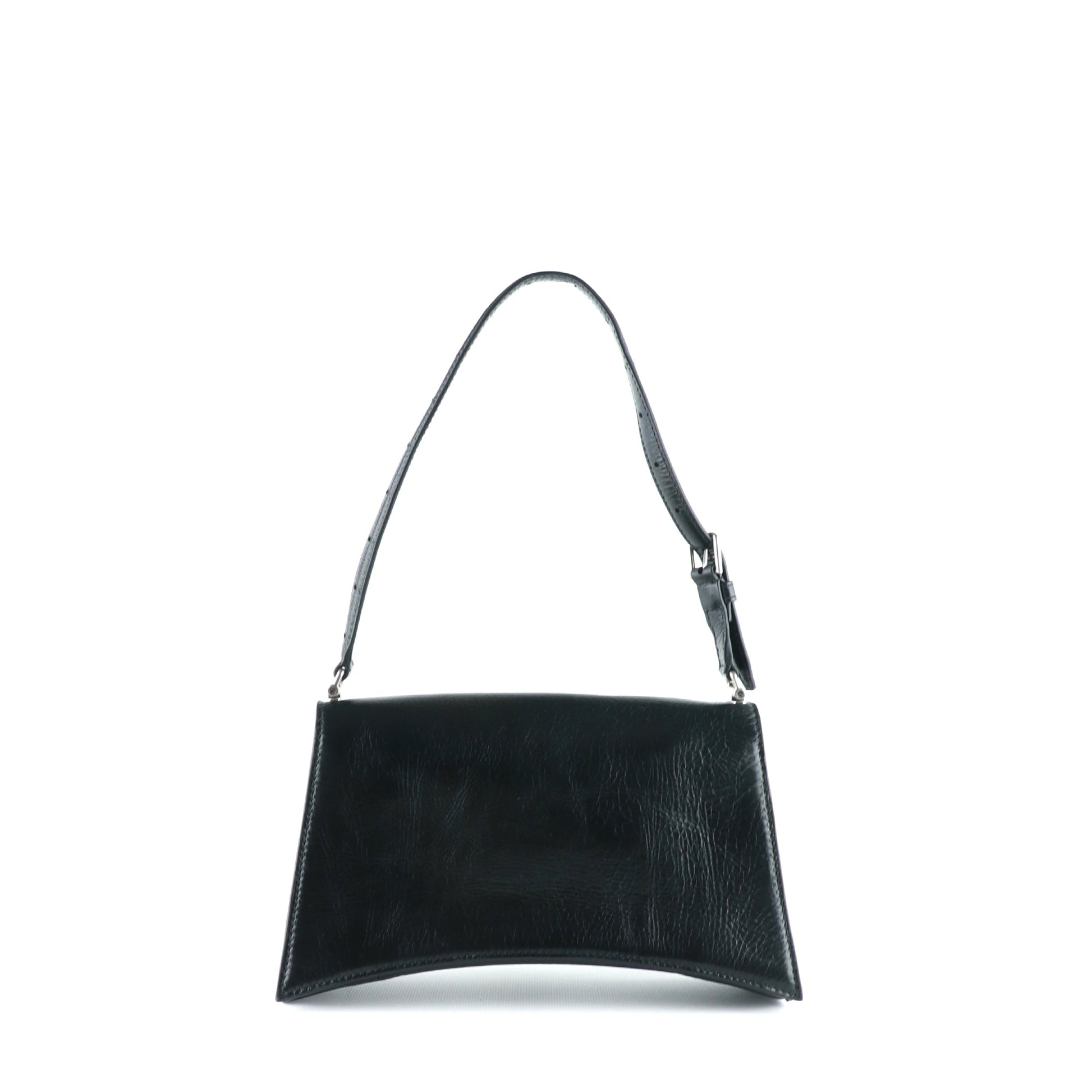 Model: Crush Material: Leather Black color Silver metallic jewelry Dimensions: 25cm x 15cm x 7cm 3 compartments Pressure opening