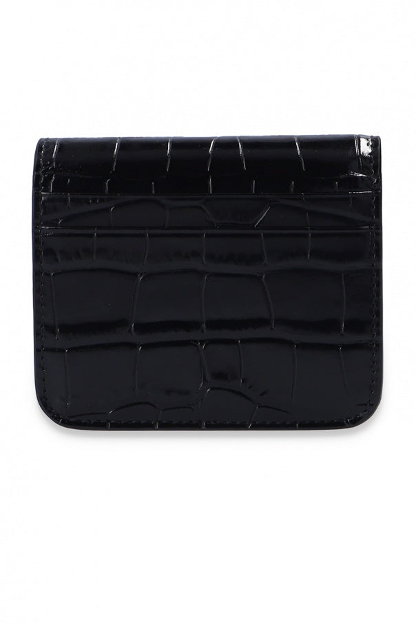Balenciaga Black Calf Leather Crocodile Embossed Mini Wallet 601474