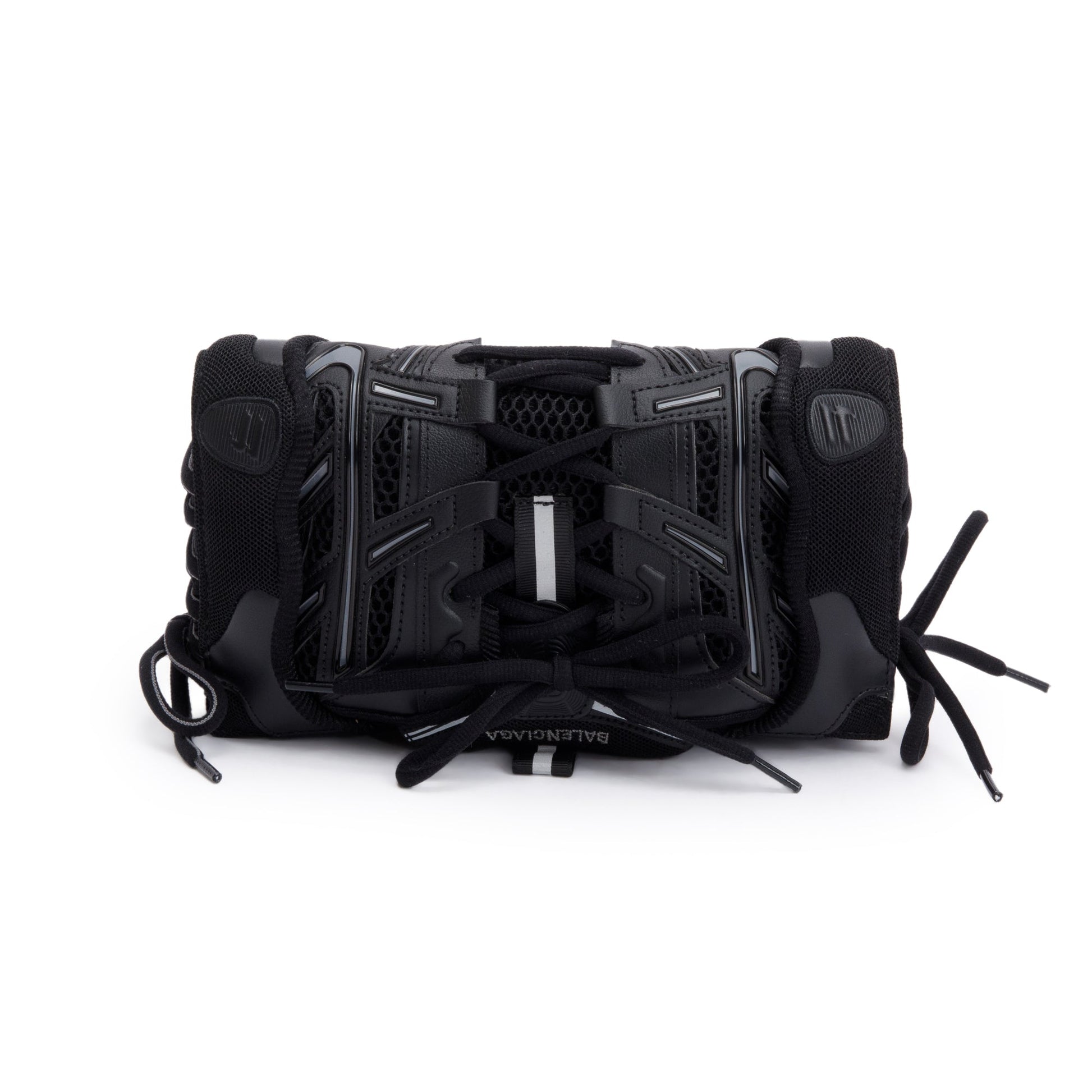 Balenciaga Black Leather Mesh Accent Sneakerhead Phone Holder Crossbody Bag