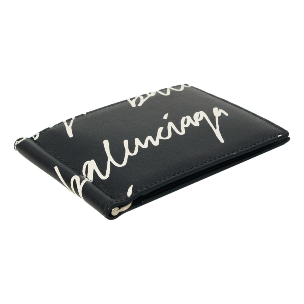 Balenciaga Cash Black Leather Scribble Logo Money Clip Wallet 625819