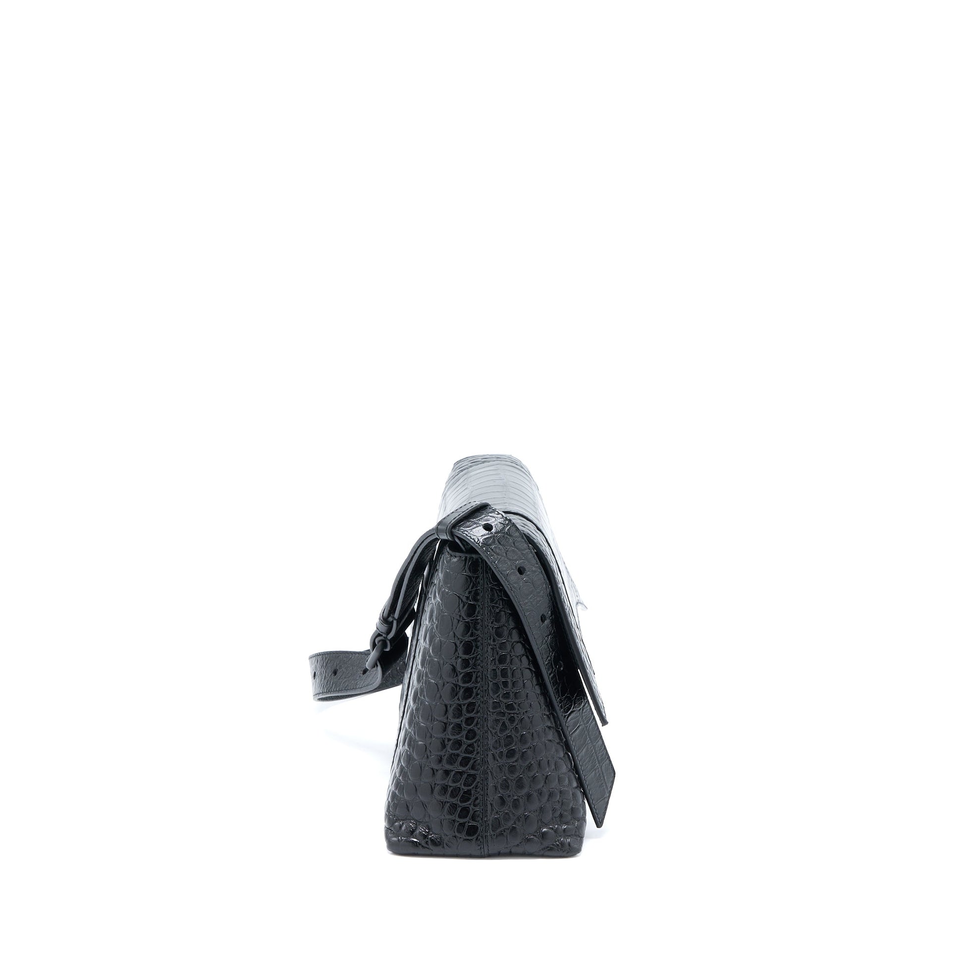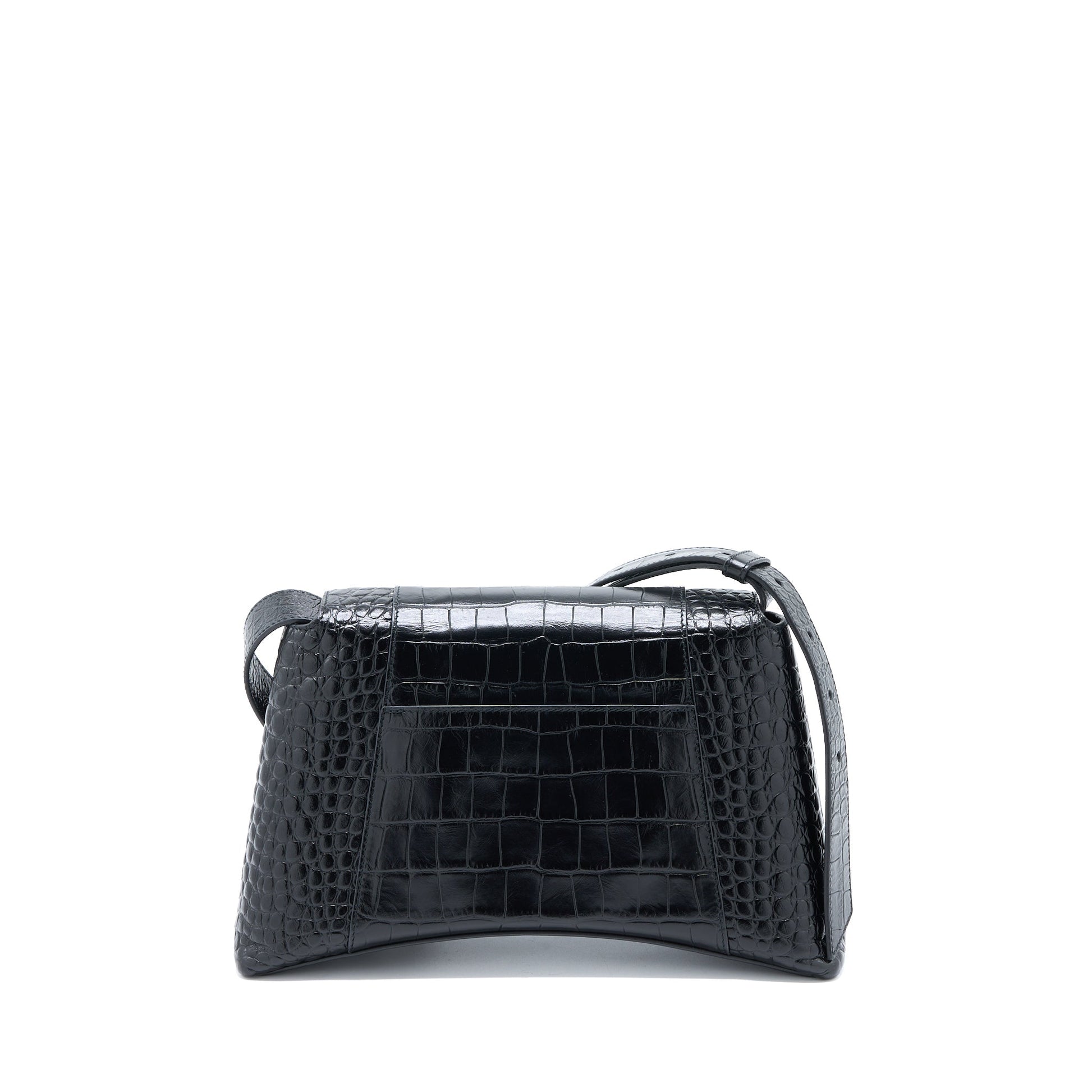 Balenciaga Small Downtown Shoulder Bag Croc Embossed Leather Black with Black Hardware