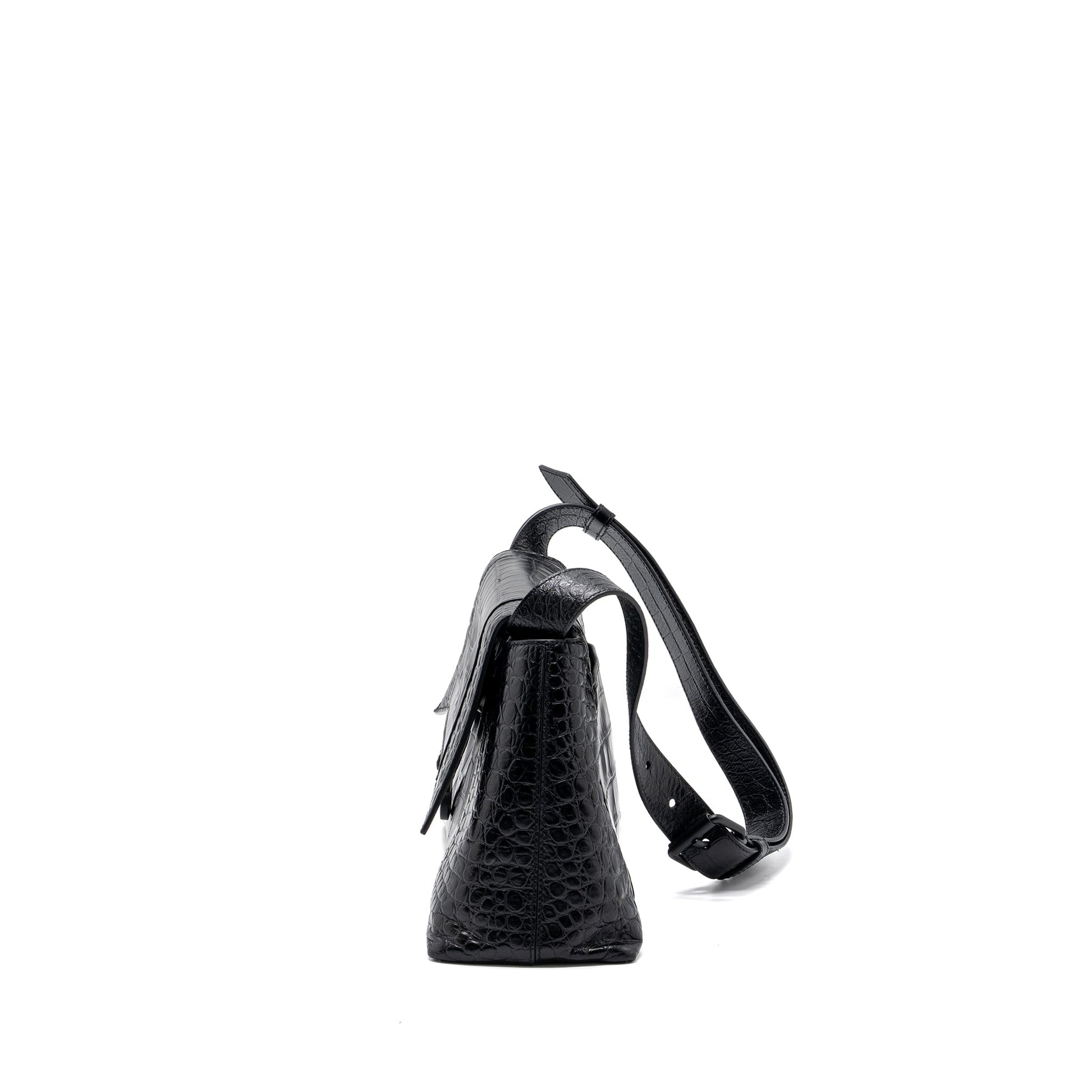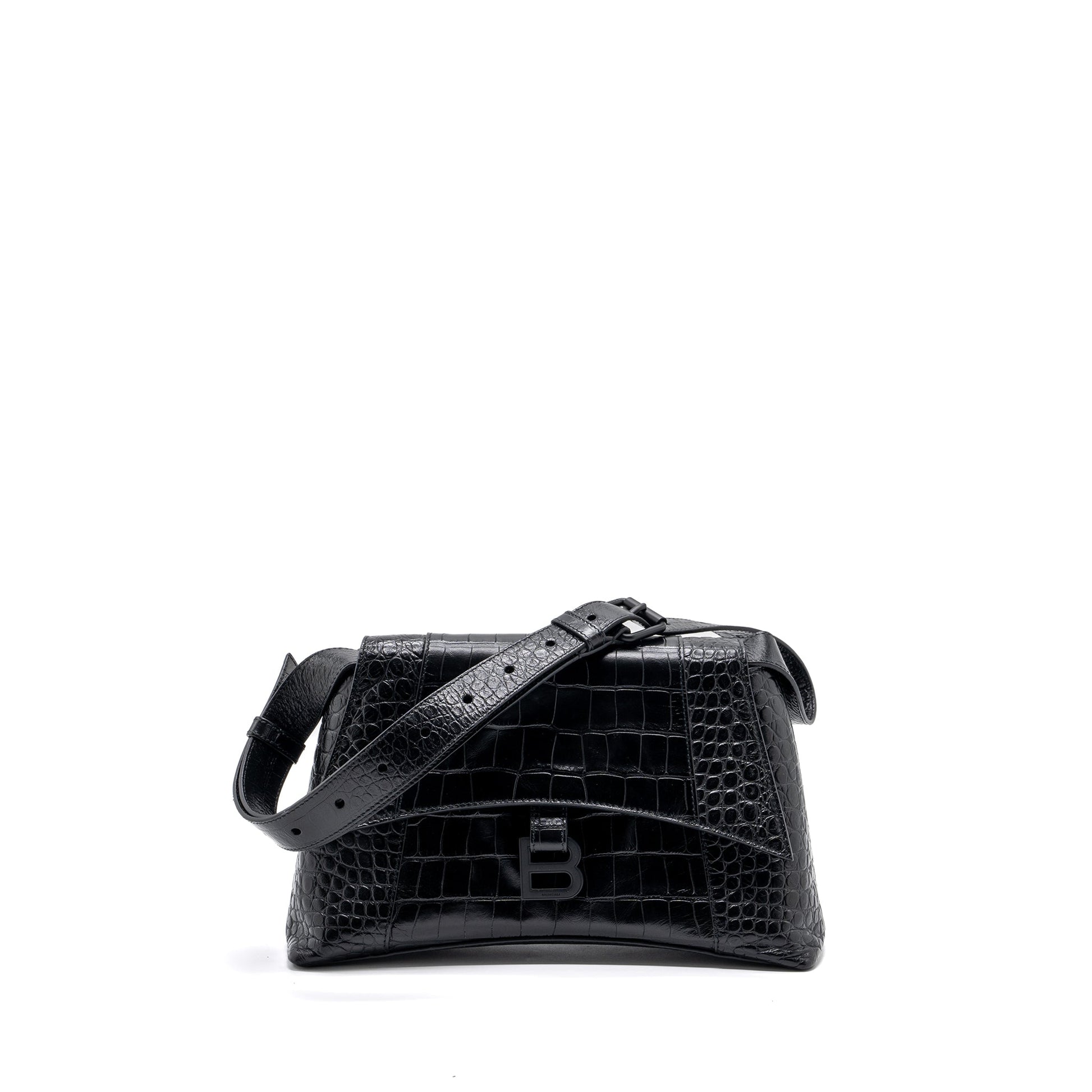 Balenciaga Downtown Small Shoudler Bag Crocodile Embossed Black with Black Hardware