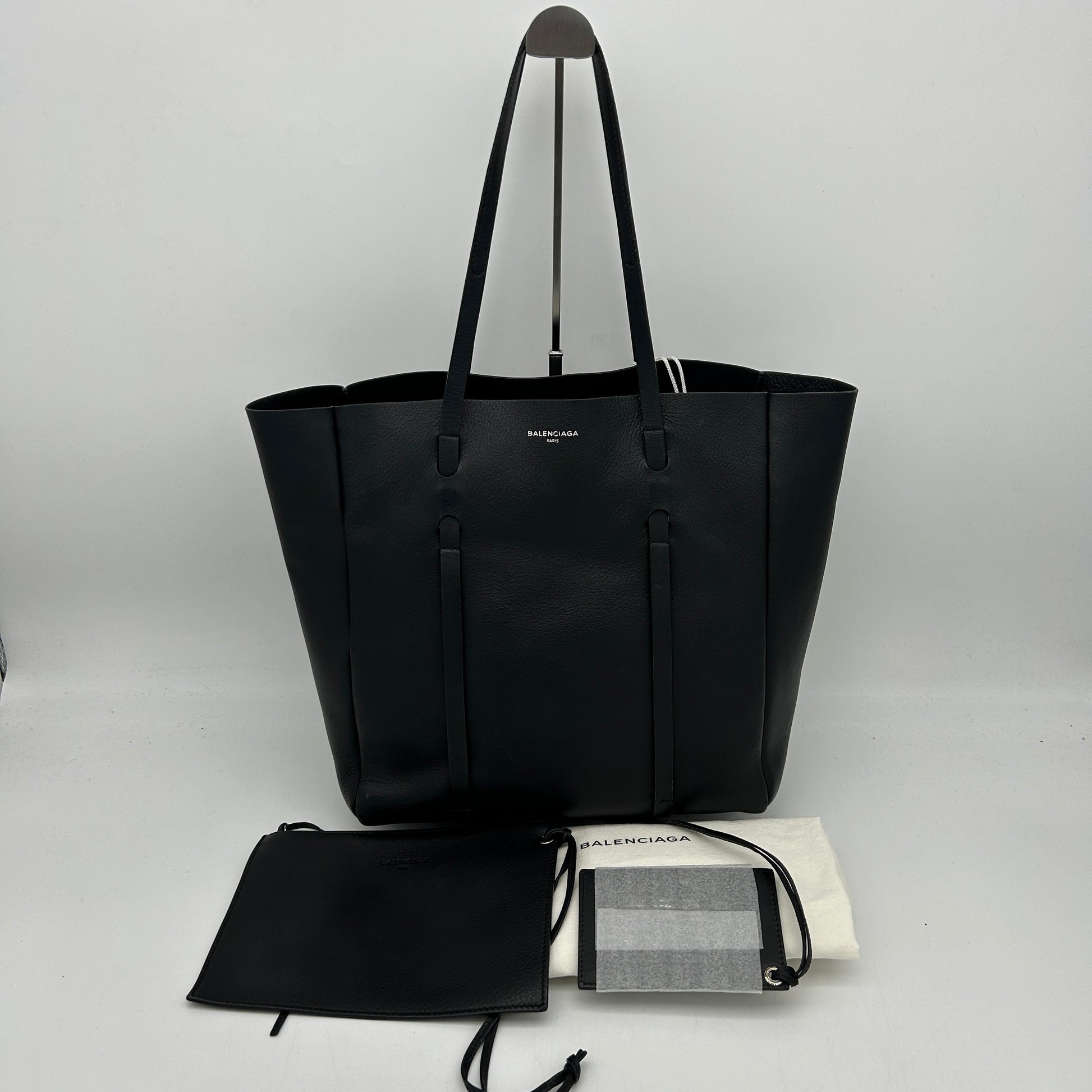 Experience the perfect blend of style and functionality with the Balenciaga Everyday Tote Bag. Its sleek black leather exterior paired with a spacious design makes it ideal for both casual and professional settings. Carry your essentials confidently, knowing you're making a timeless fashion statement.
