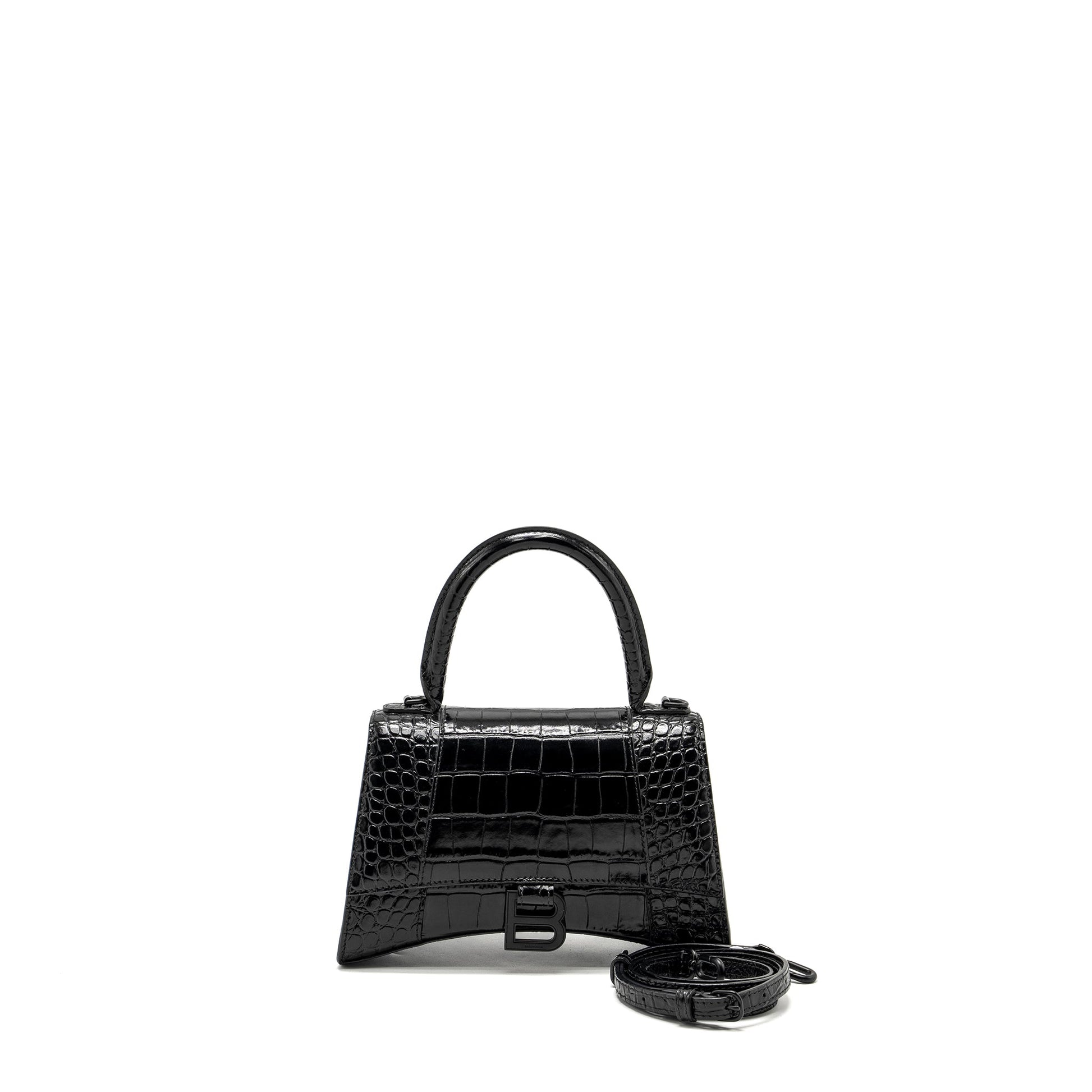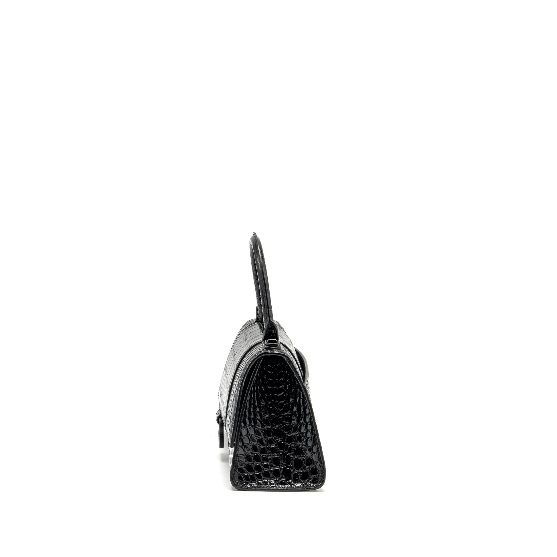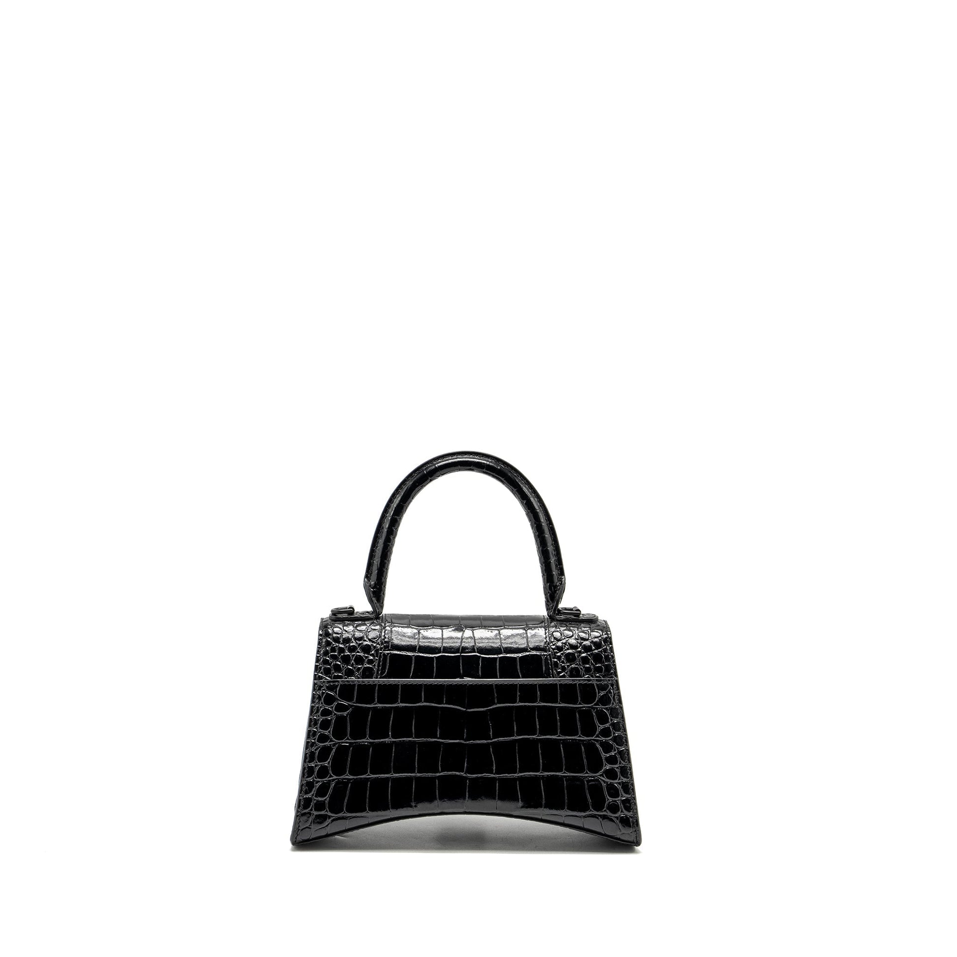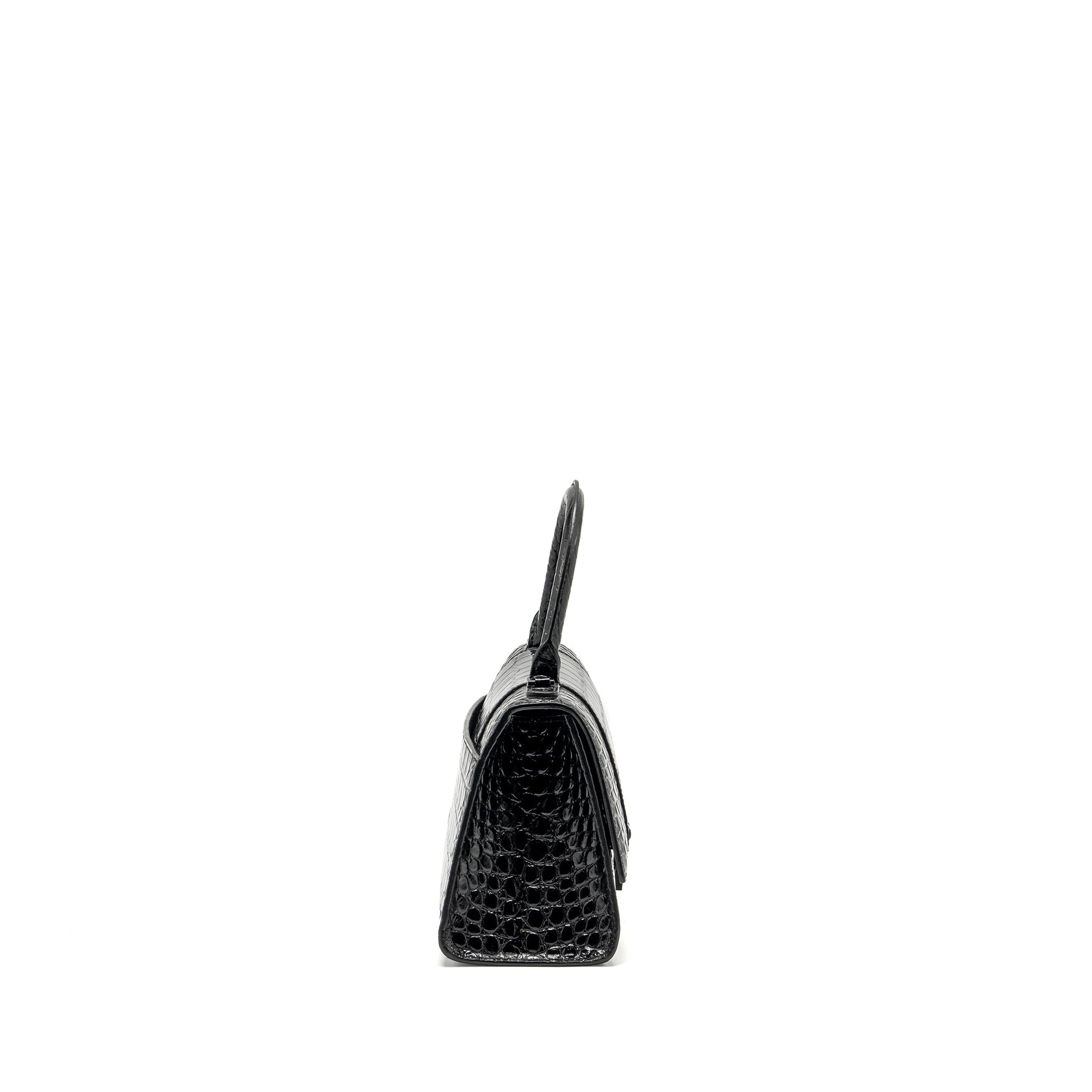 Balenciaga Hourglass S Croc-Embossed Calfskin So Black