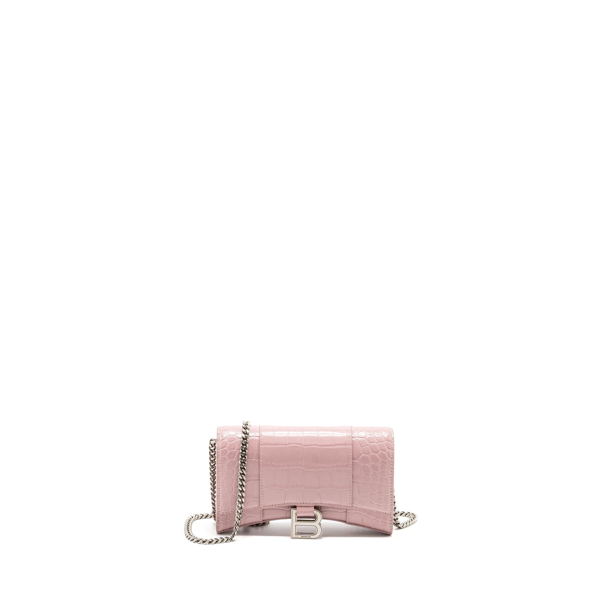 Balenciaga Hourglass Wallet on Chain Croc-Embossed Calfskin Pink SHW