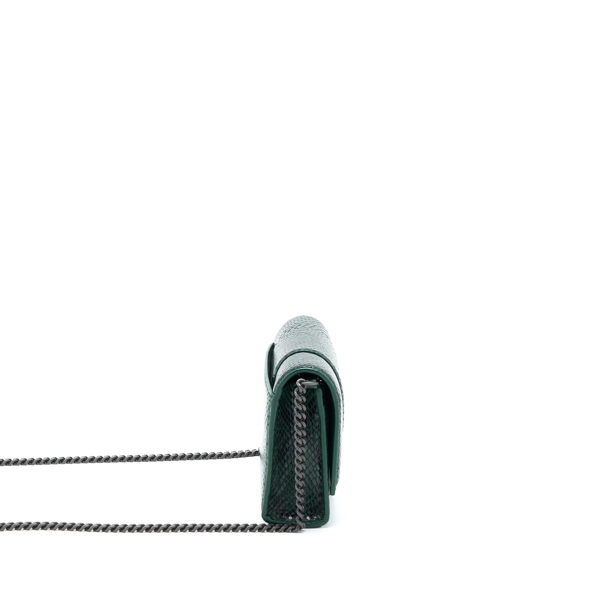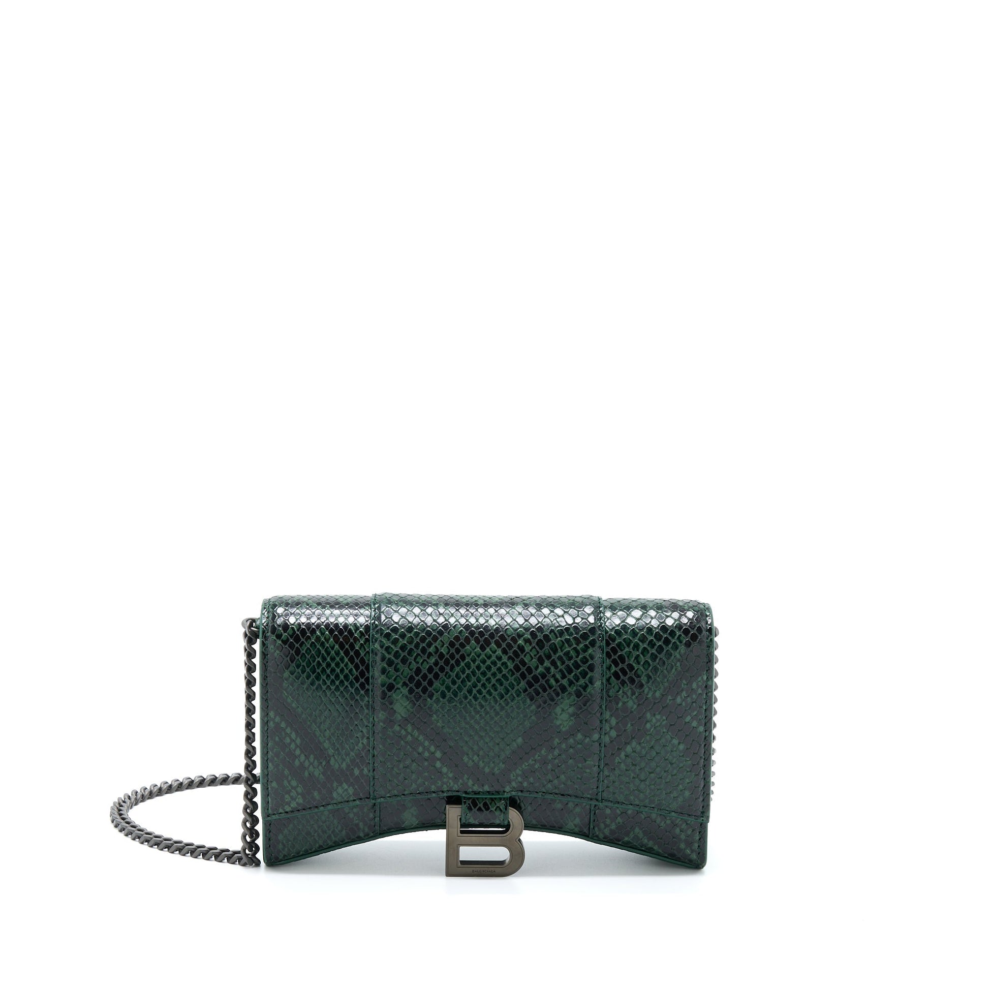 Balenciaga Hourglass Wallet With Chain Python Embossed Calfskin Black/ Dark Green