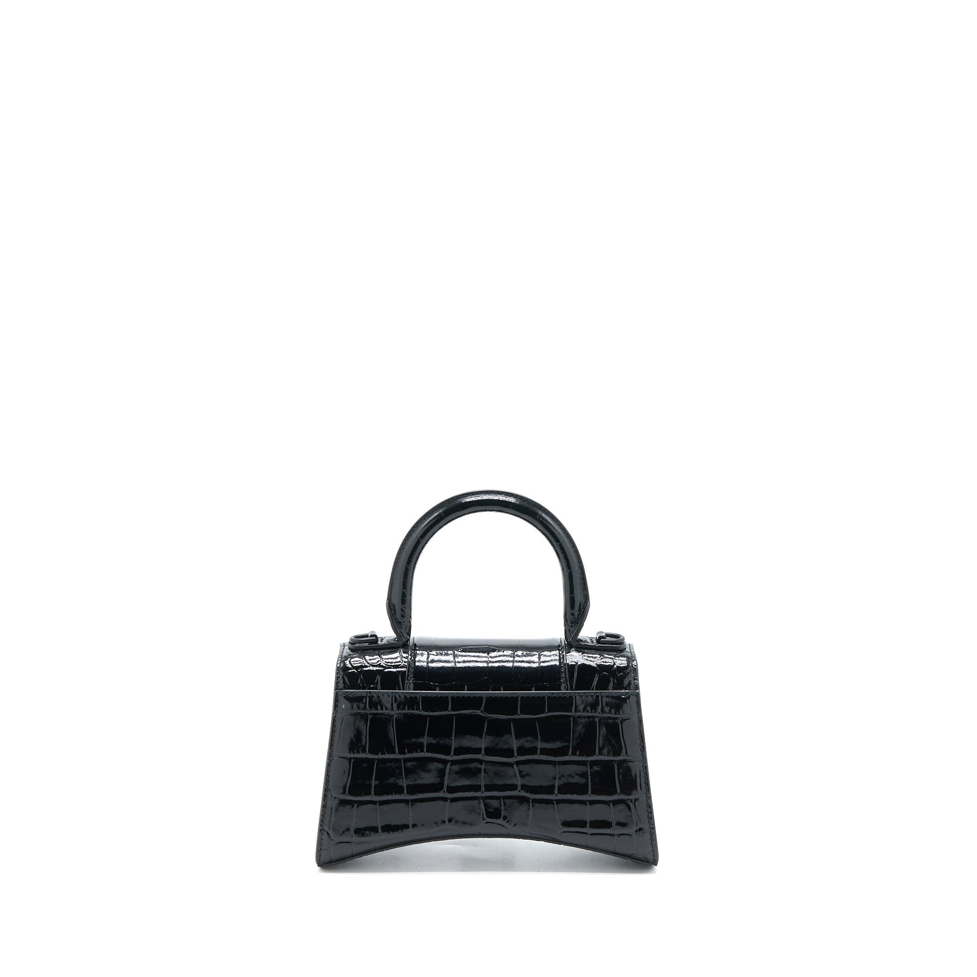 Balenciaga Hourglass XS Croc-Embossed Leather Black with Black Hardware