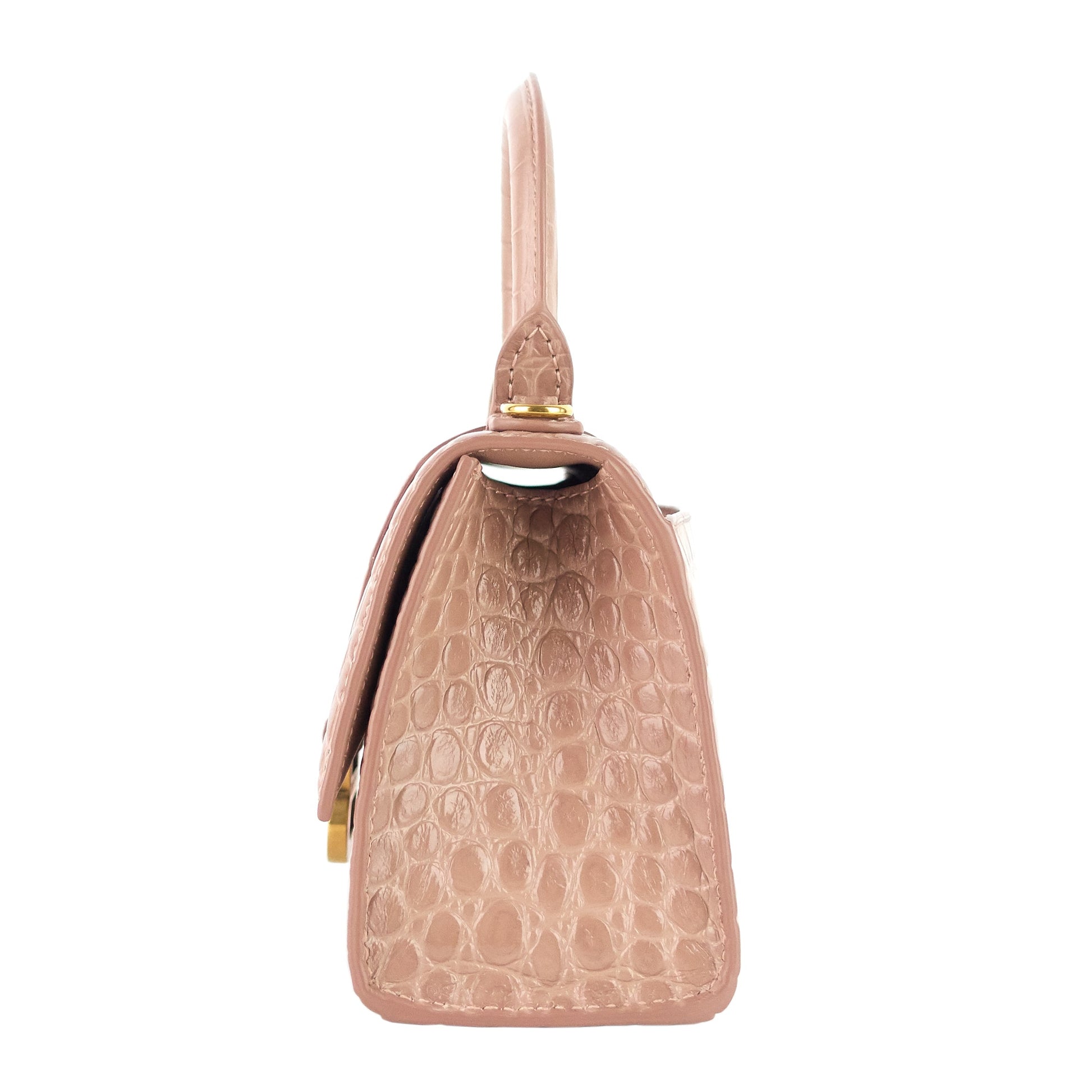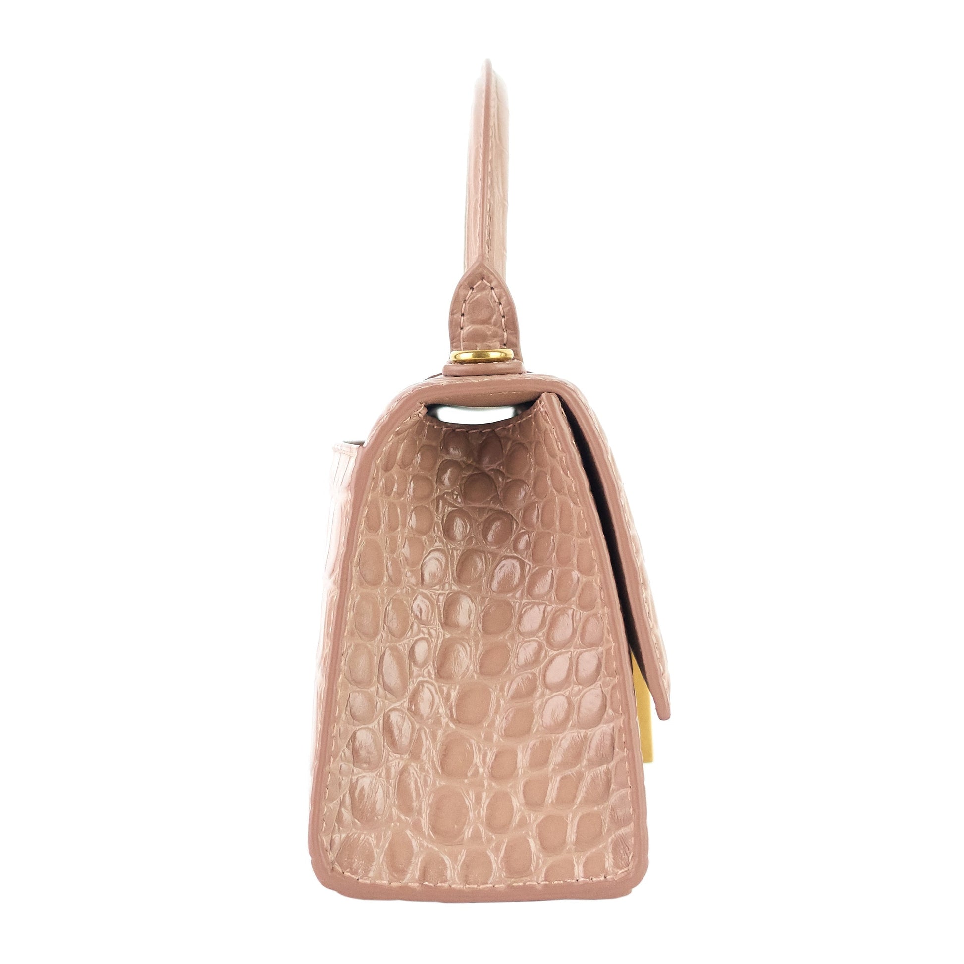 BALENCIAGA Hourglass XS Croc Embossed Leather Top Handle Bag
