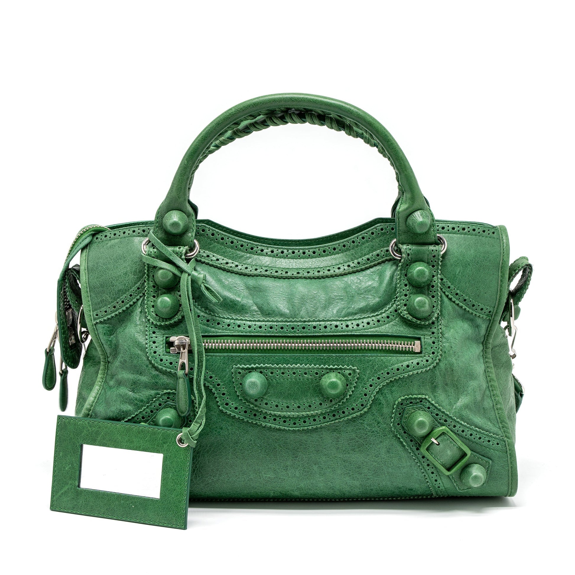Balenciaga Lace City Bag Leather Green SHW