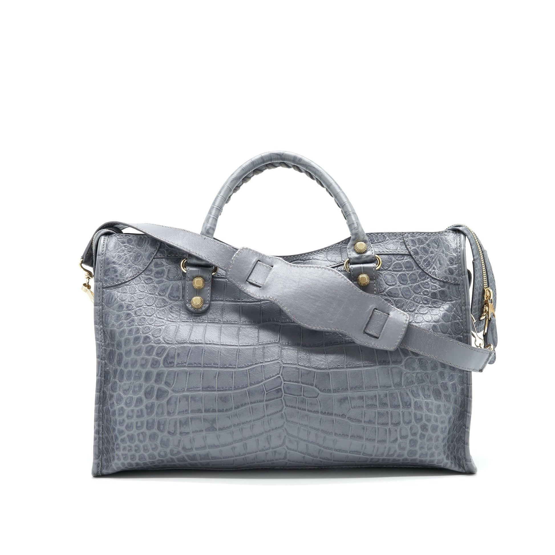 Balenciaga Medium Embossed Calfskin Bag in Grey SHW
