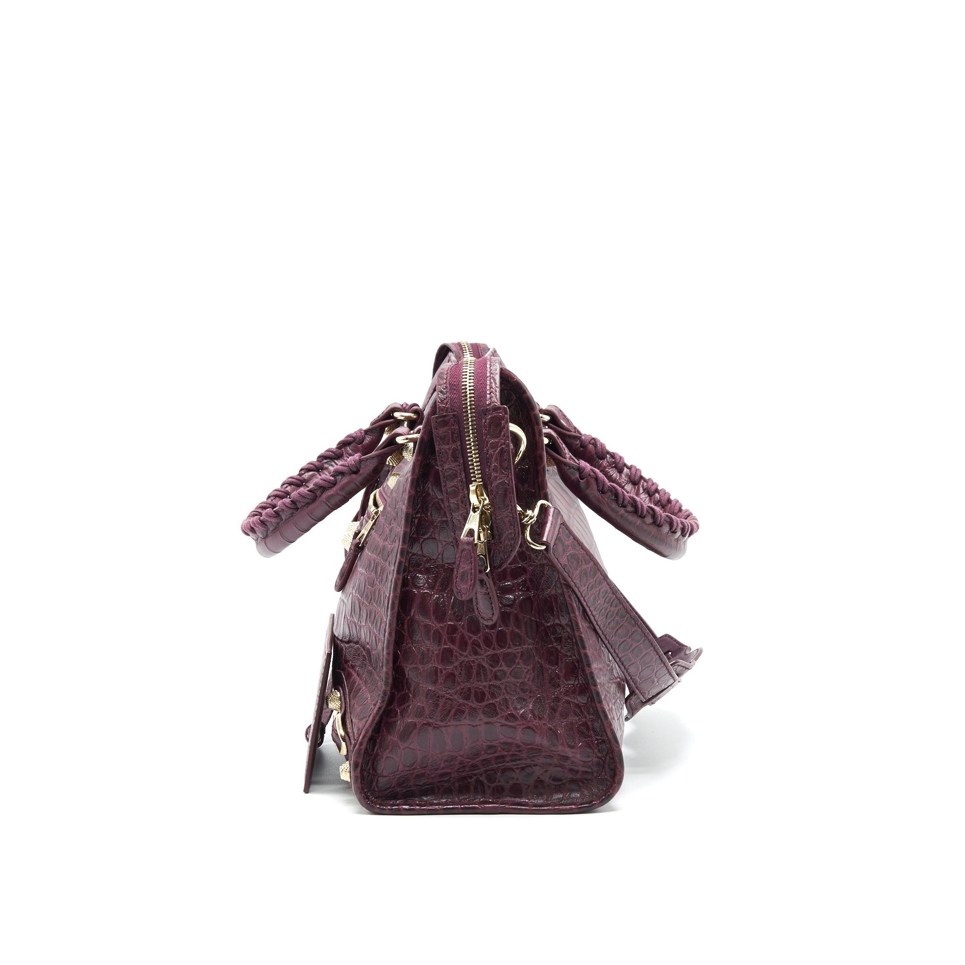 BALENCIAGA MEDIUM GIANT CITY BAG BURGUNDY CROCODILE EMBOSSED LEATHER WITH GHW
