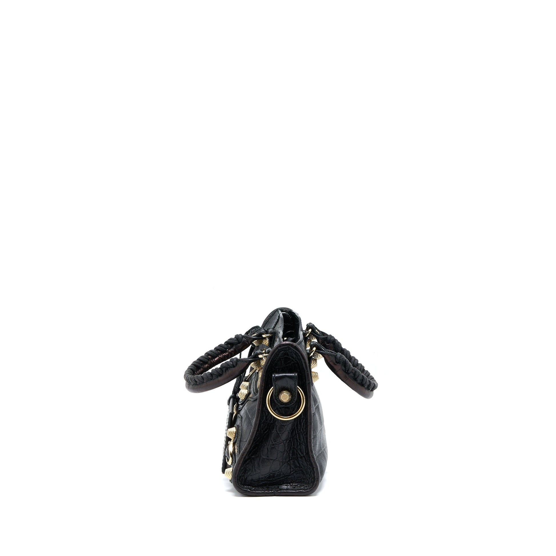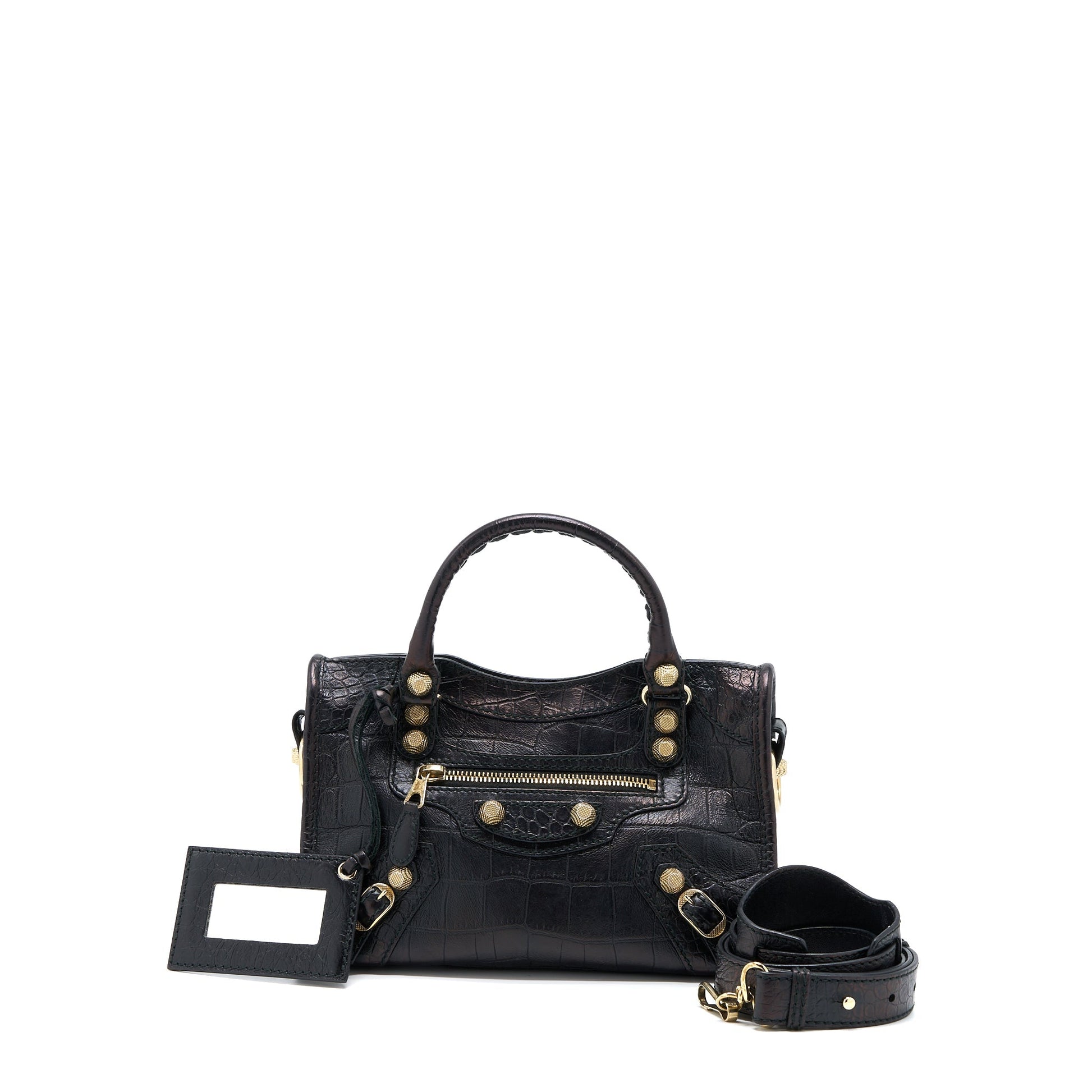 Balenciaga Mini City Croc-Embossed Calfskin Black GHW