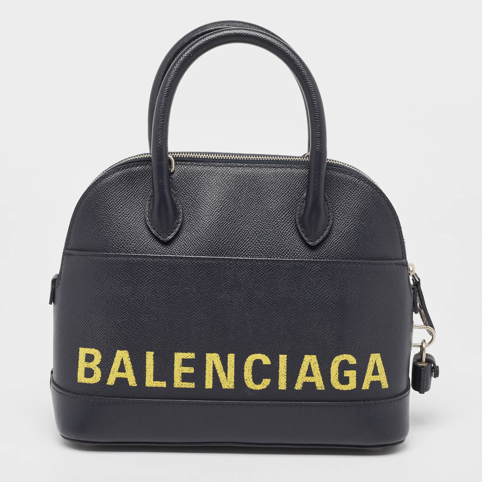 BALENCIAGA Navy Blue Leather Small Ville Bag