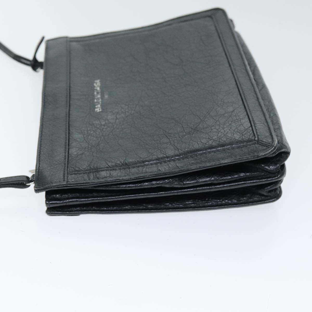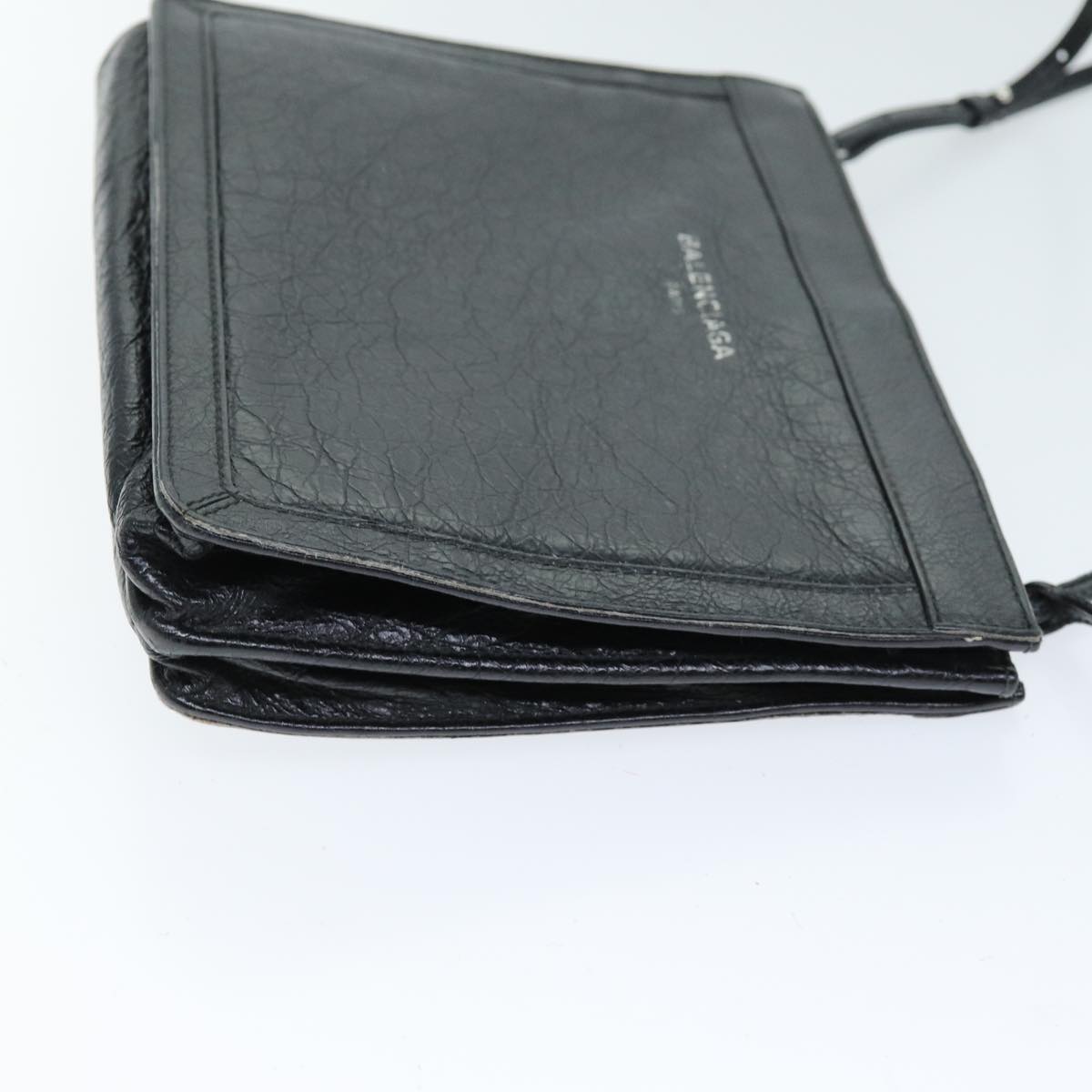 BALENCIAGA Navy Pochette Shoulder Bag Leather Black 339937 Auth bs14200