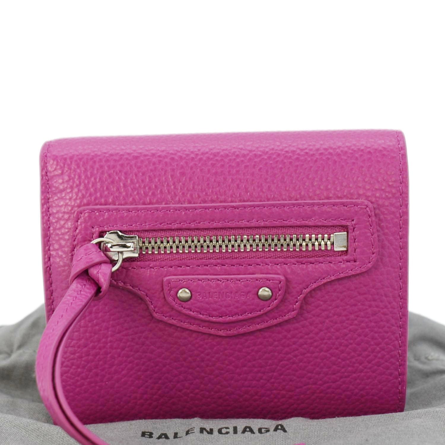 The Balenciaga Neo Classic Mini Wallet in Pink Leather is a compact, stylish accessory with a modern twist on the brand's classic design. Its petite size and zip details make it both practical and chic for everyday use.