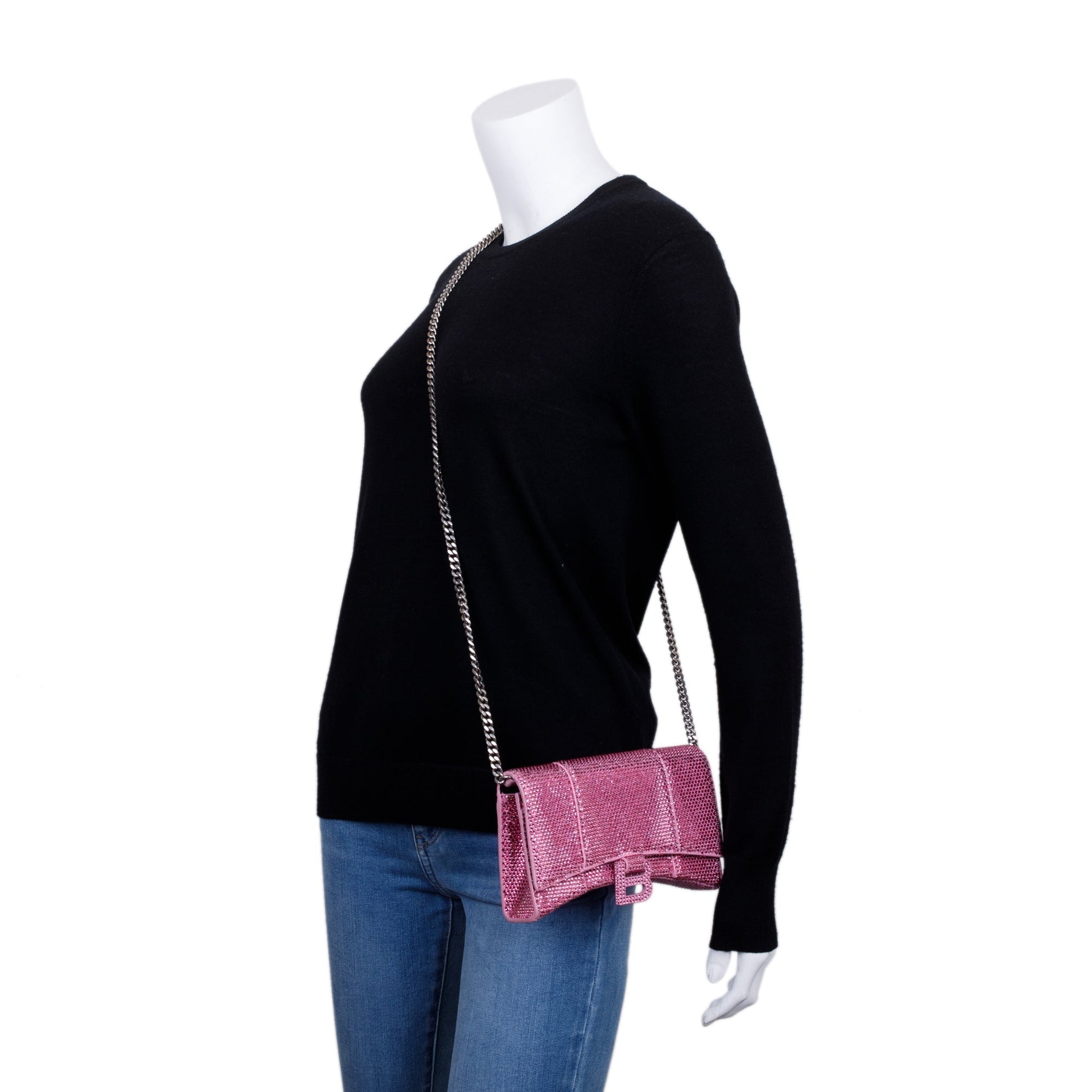 Balenciaga Pink Rhinestone Hourglass Wallet on Chain w/ Box