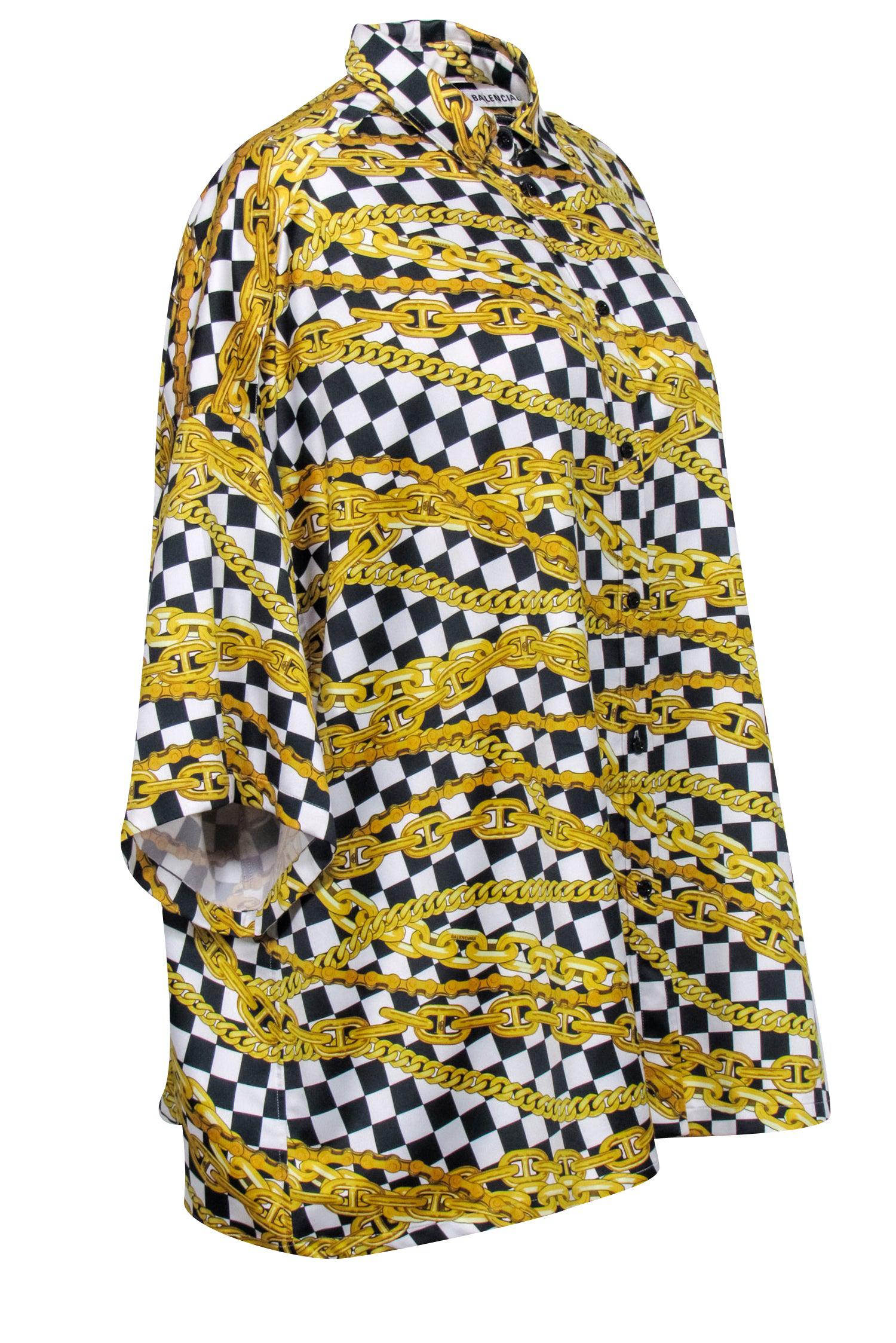 Balenciaga - Gold, Black, & White Checkered Chain Print Top Sz 4