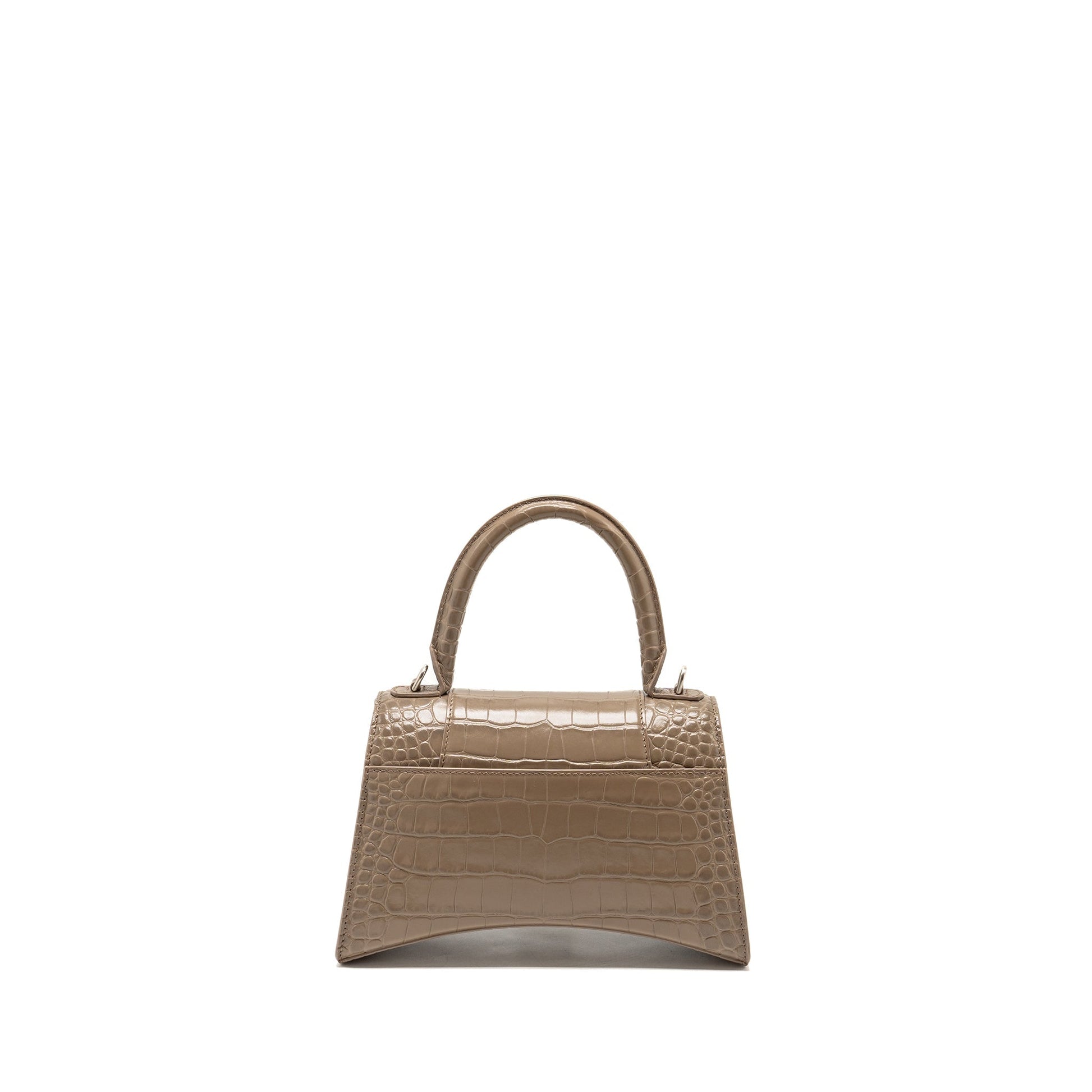 Balenciaga Small Hourglass Bag Croc-Embossed Calfskin Dark Beige SHW