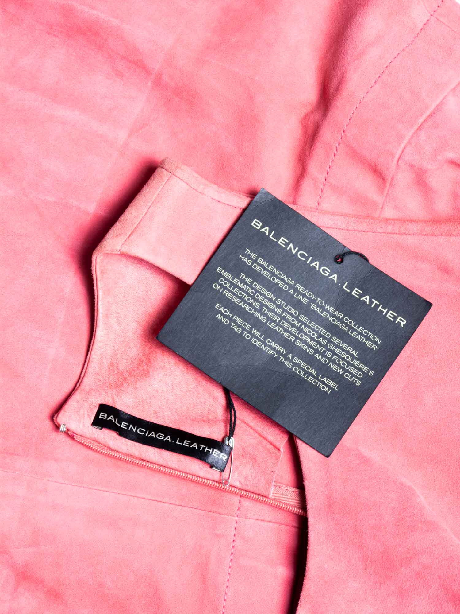 Balenciaga Mini Dress or . This dress is in pink suede leather with a back zipper closure. It is from the "Balenciaga Leather" Ready-to-Wear Collection influenced by Nicolas Ghesquière's collections.