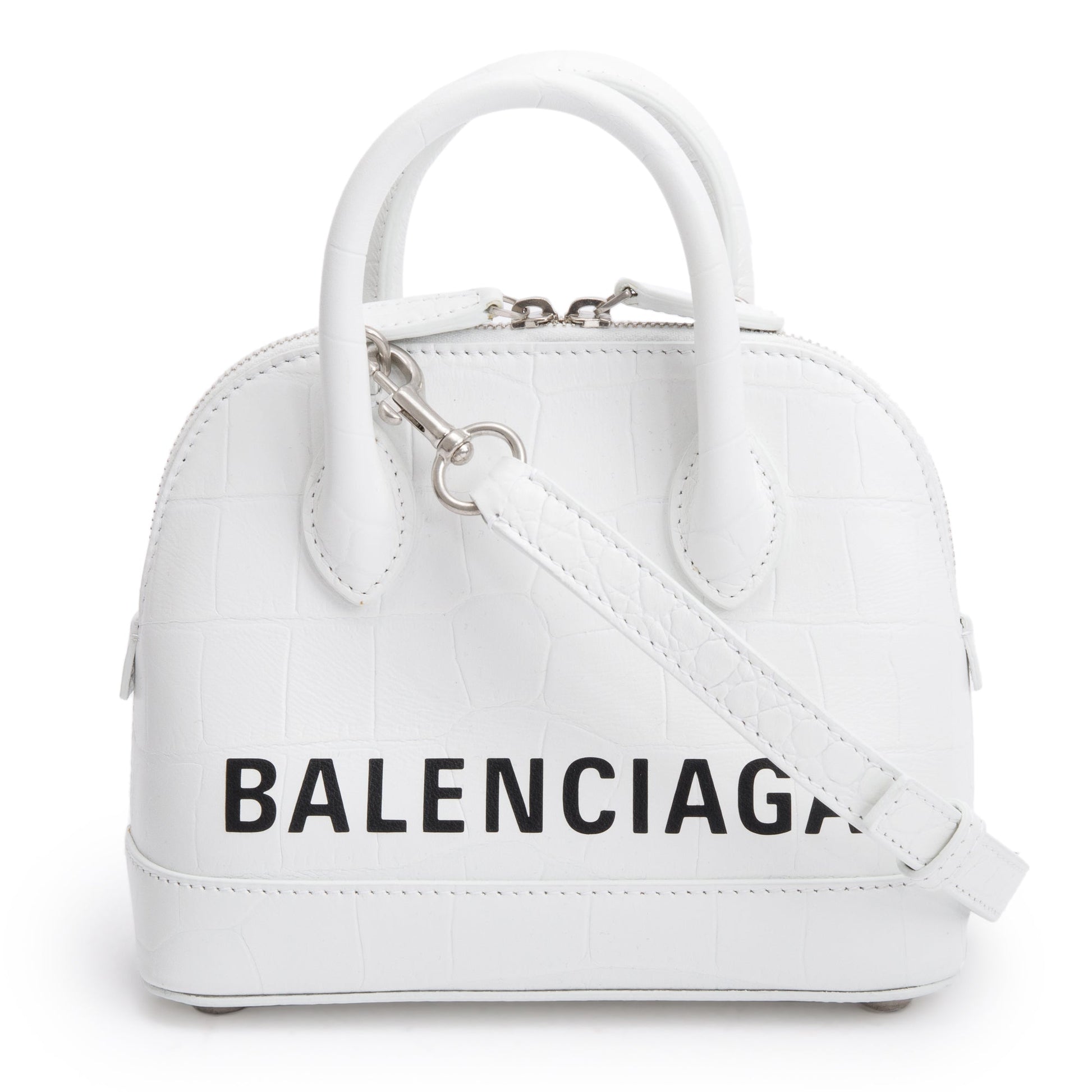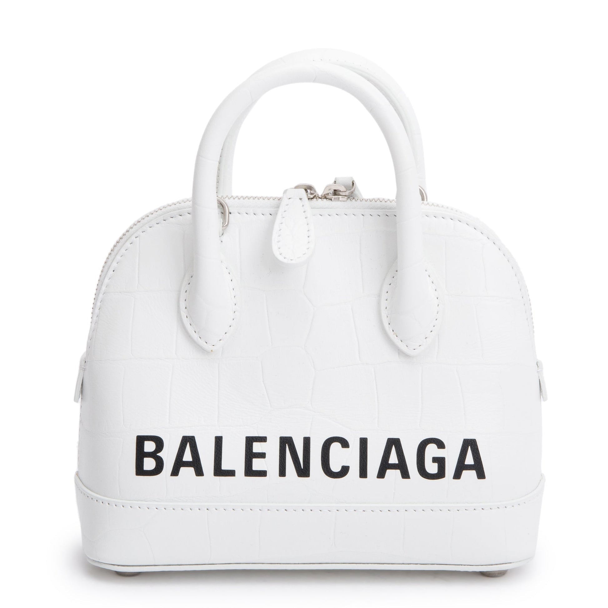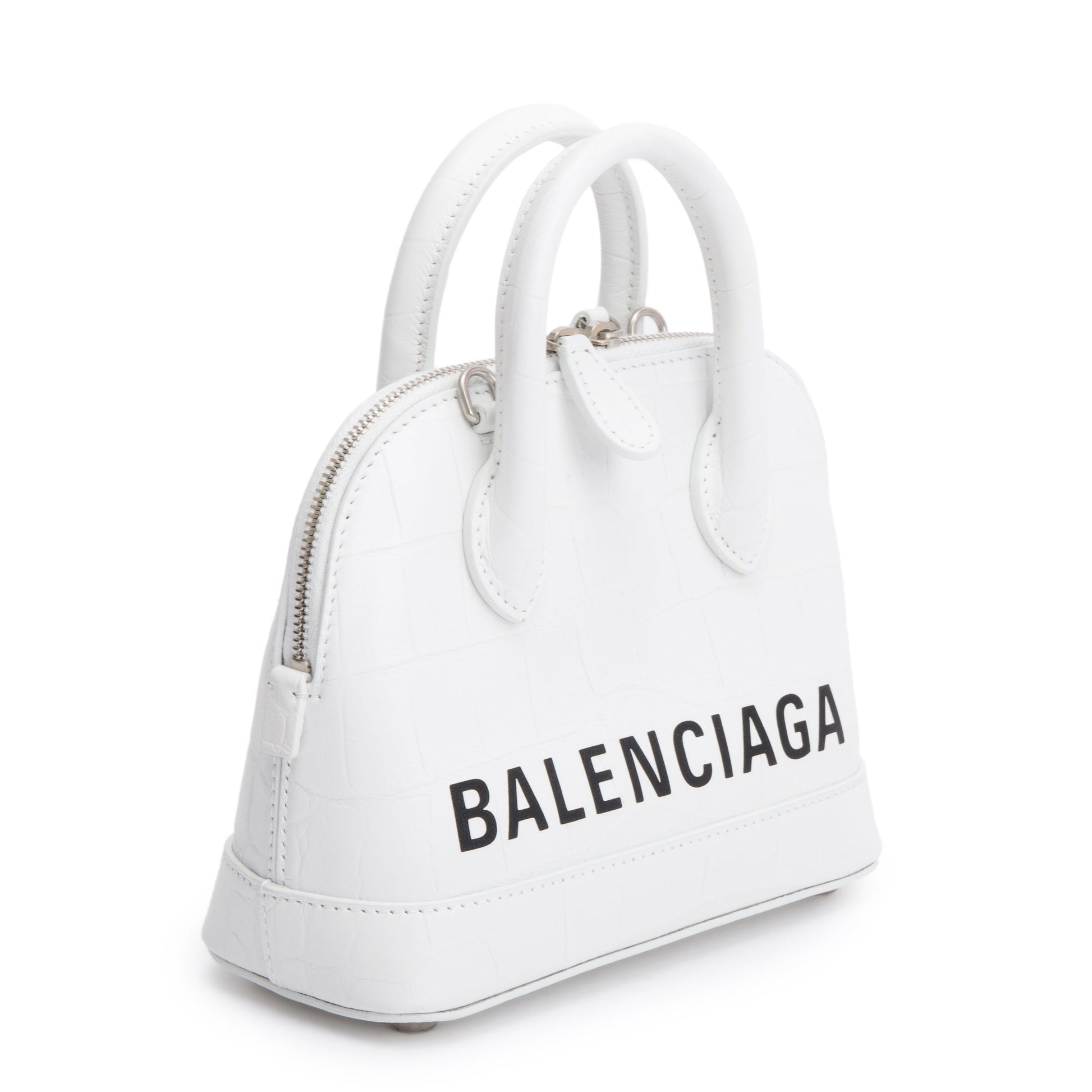 Balenciaga White Croc-Embossed Calfskin Leather XXS Ville Top Handle Bag