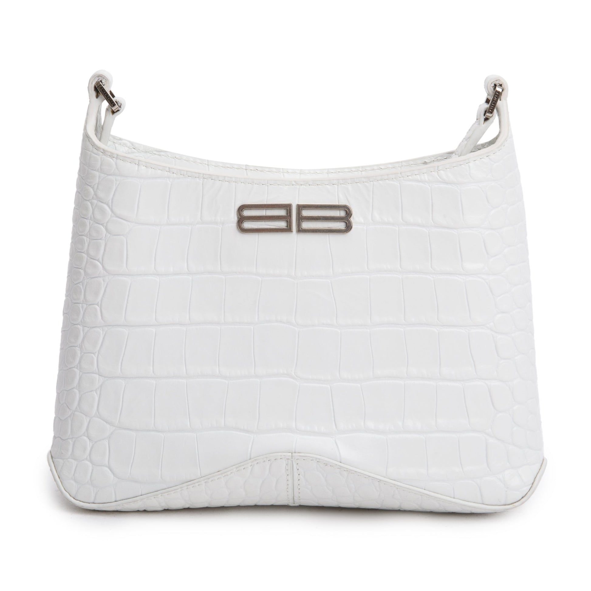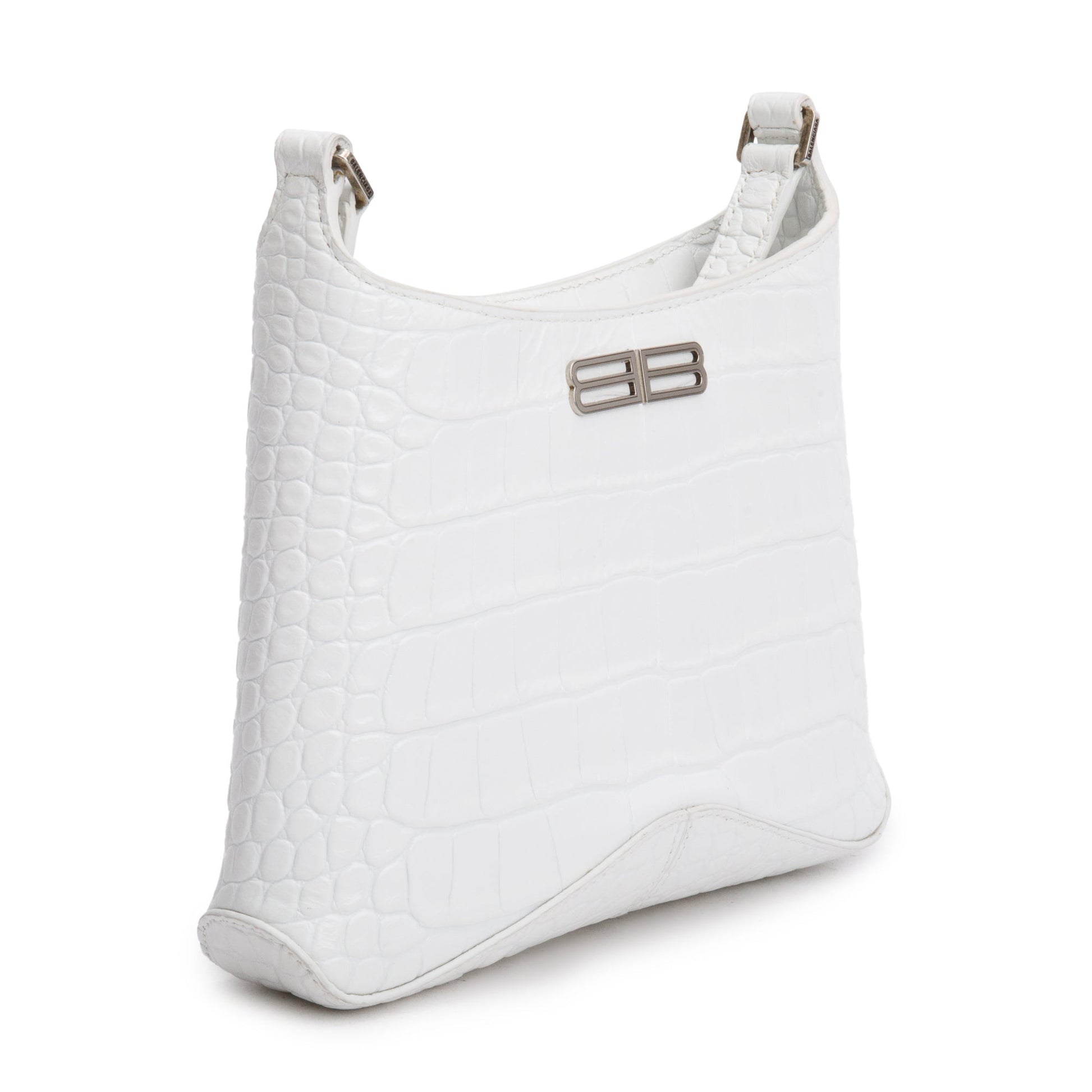 Balenciaga White Croc-Embossed Leather Xx Small Hobo Bag