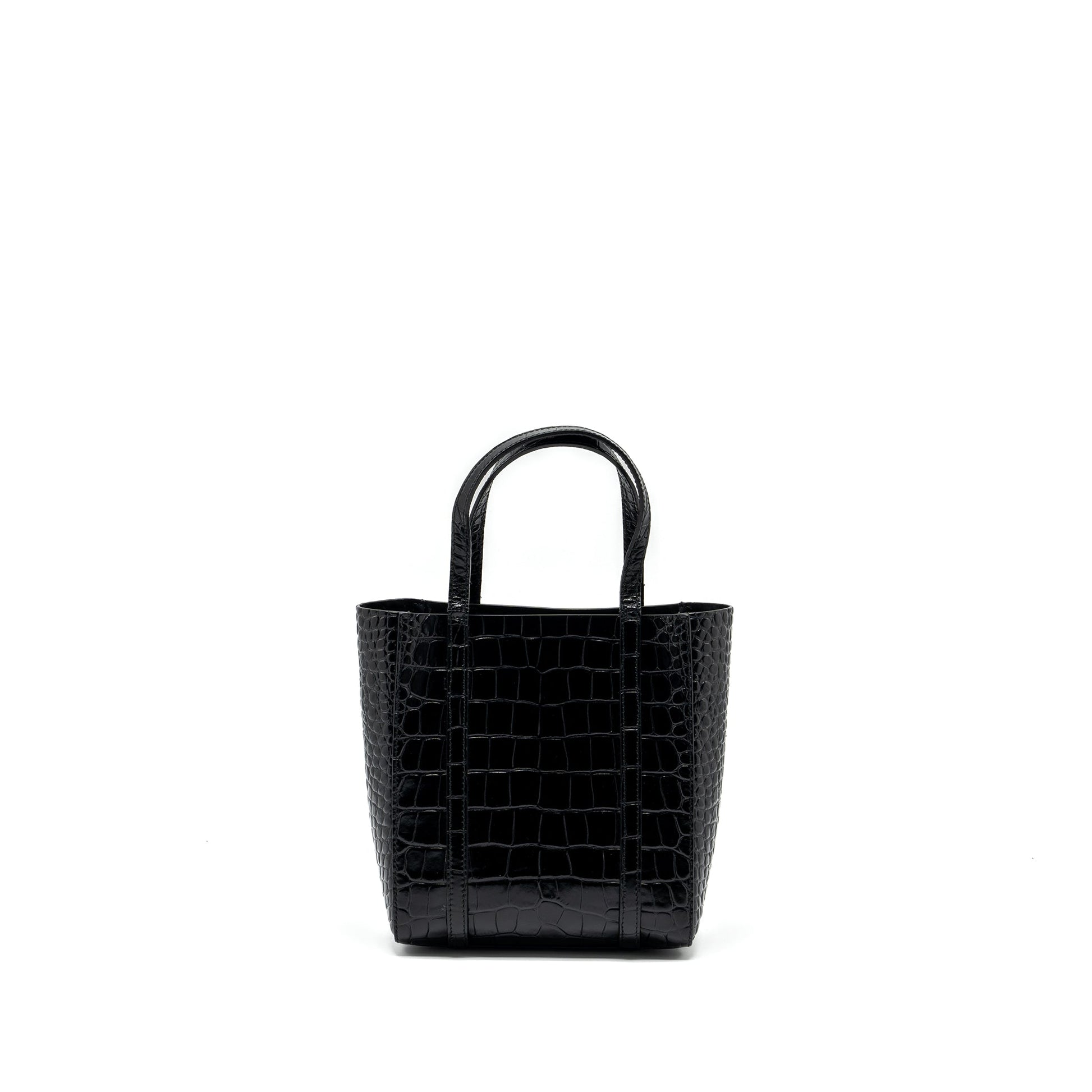 Balenciaga XXS Everyday Tote Bag Croc-Embossed Calfskin Black SHW