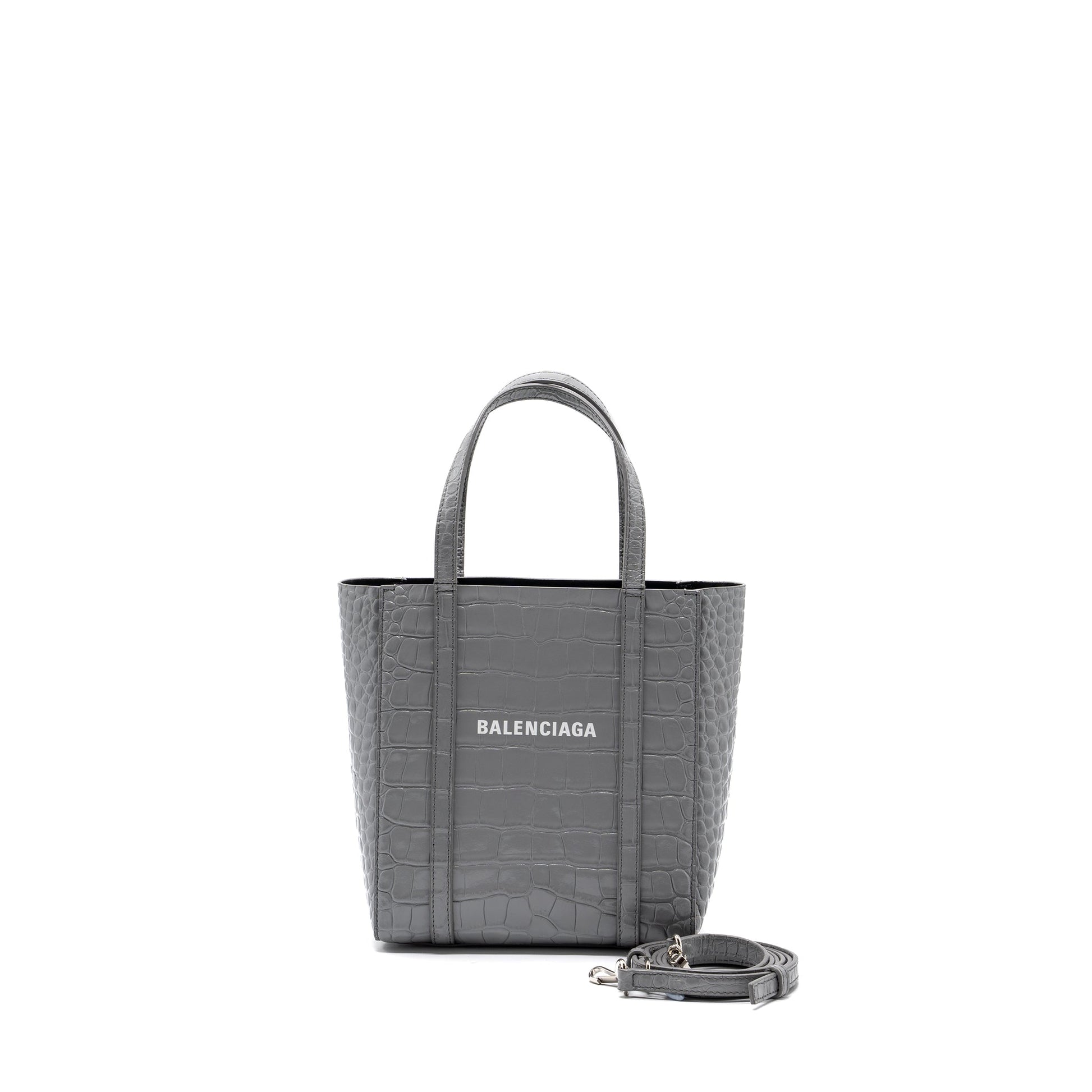 Balenciaga XXS Everyday Tote Bag CROC-EMBOSSED calfskin Grey SHW
