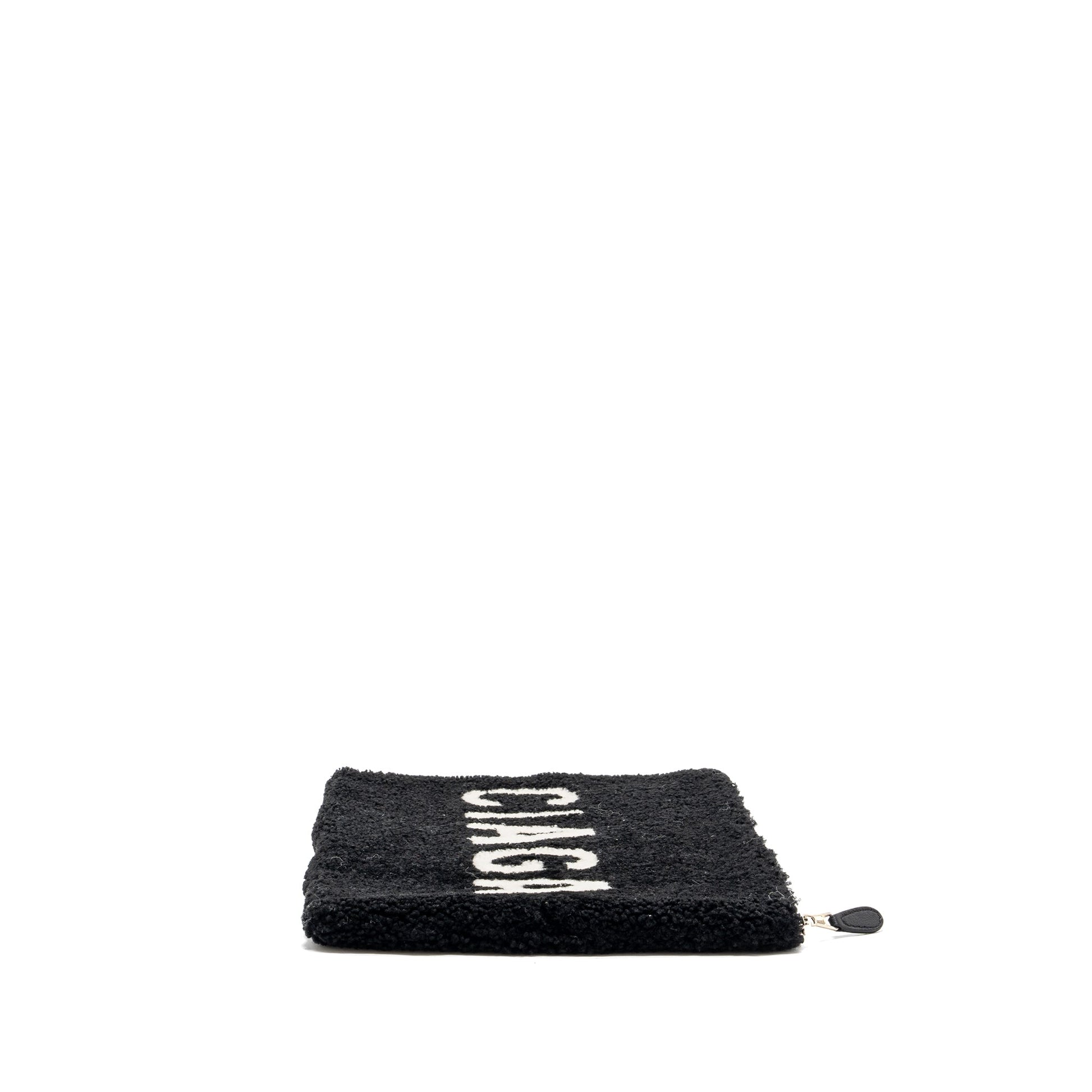 Balenciaga zip pouch clutch shearling black/ white SHW