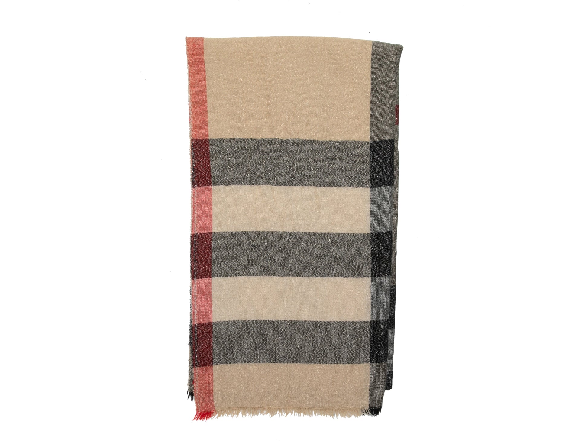 Beige & Multicolor Burberry Shimmer Nova Check Scarf