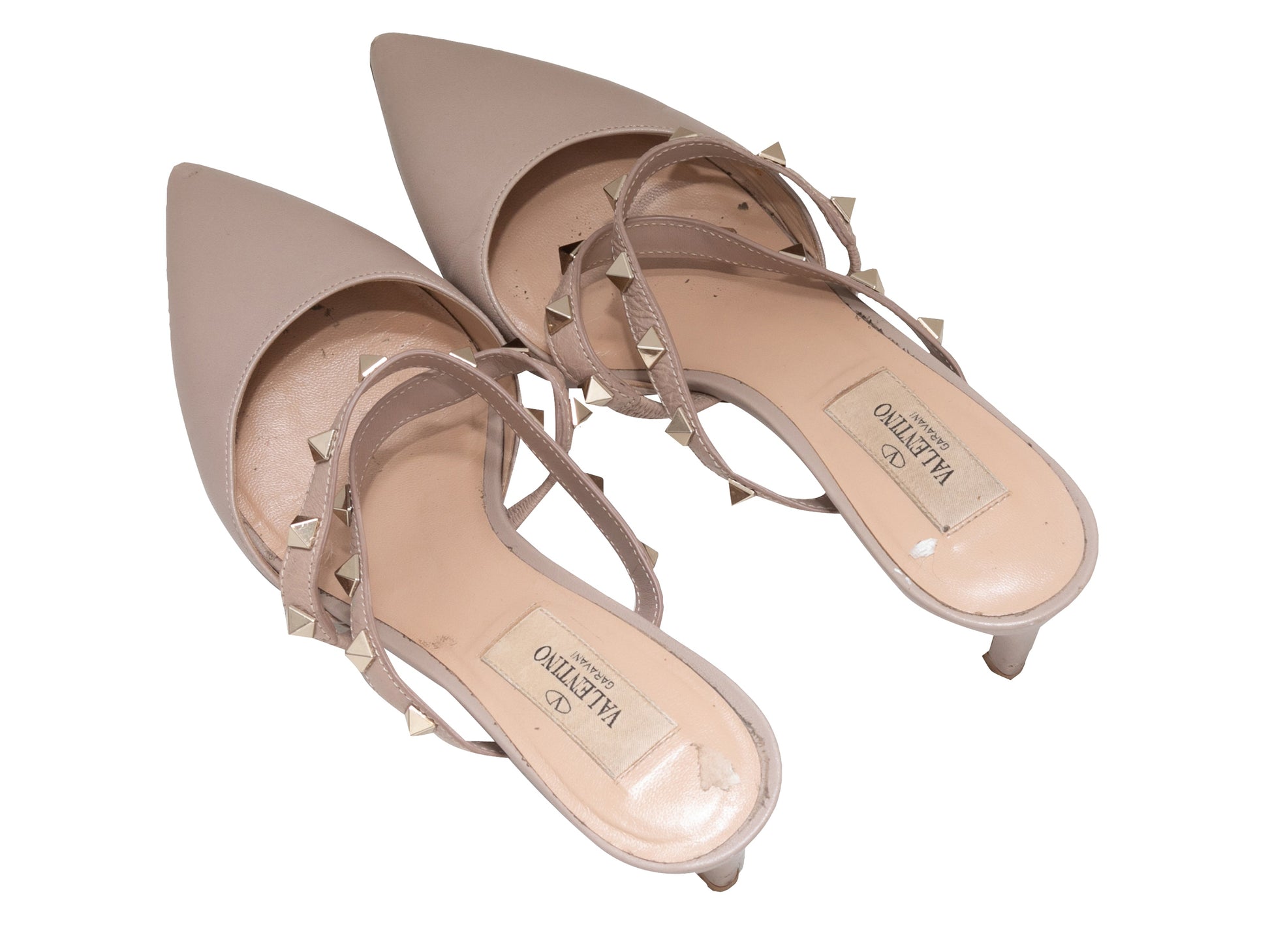 Beige Valentino Pointed-Toe Rockstud Heeled Mules Size 36