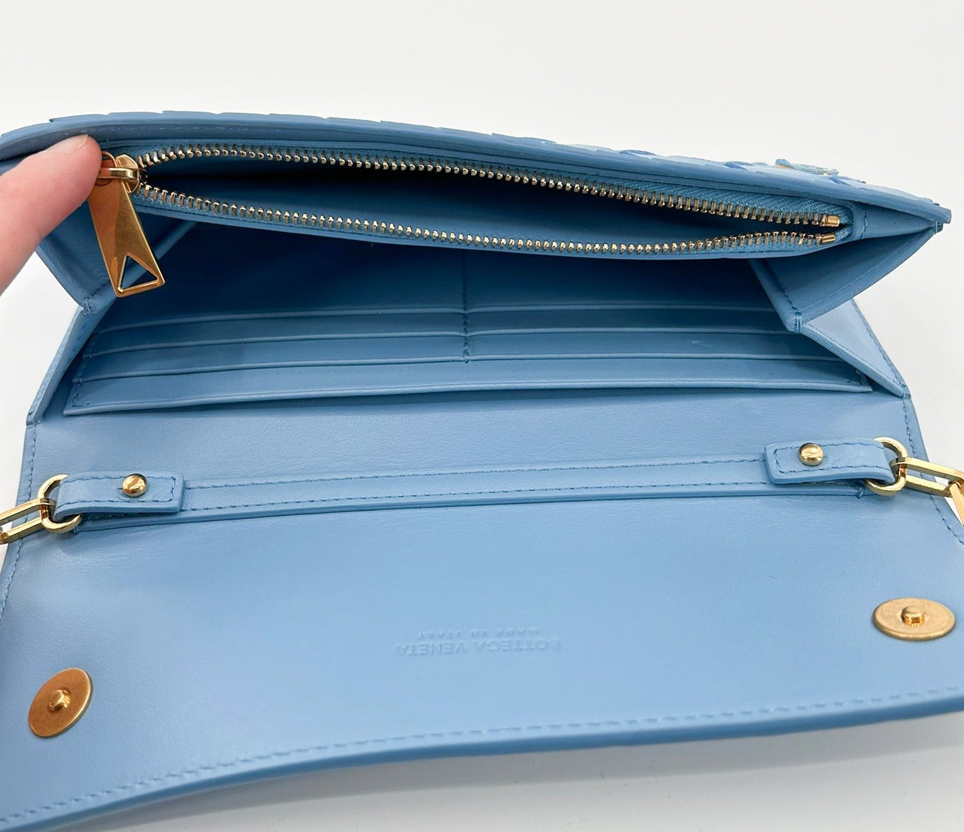 Bottega Veneta Intrecciato Leather Chain Wallet - Sky Blue
