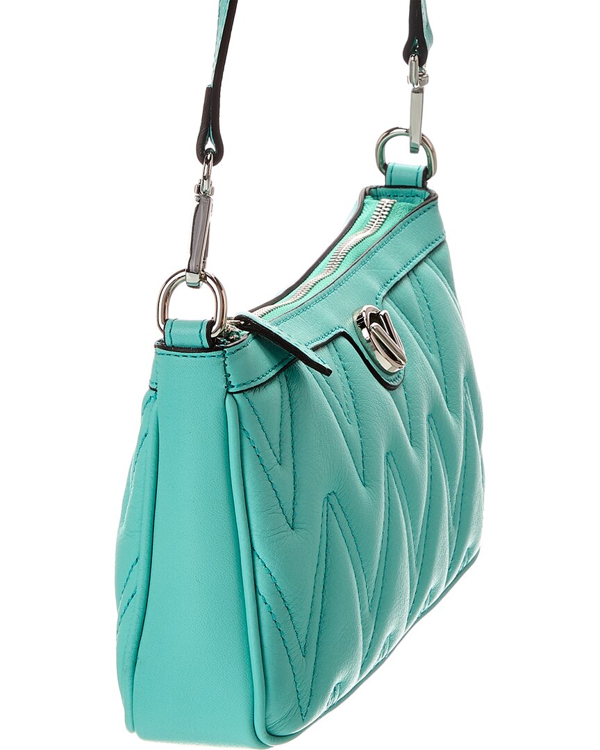 - Jeanette Diamond Leather Shoulder Bag In Bermuda Green Leather And Silver-Tone Hardware With Logo Accent