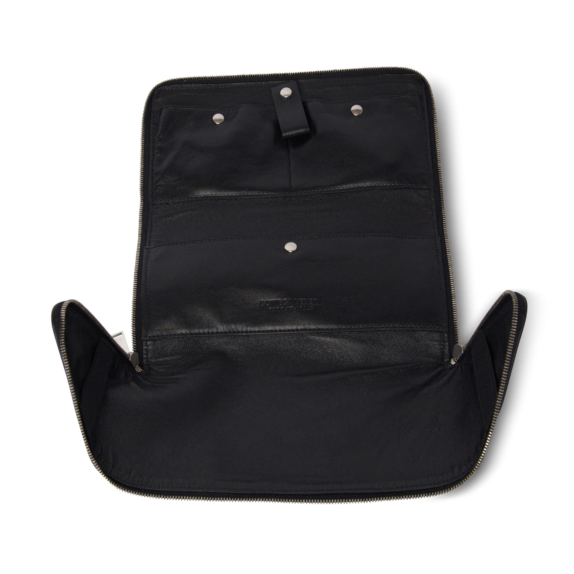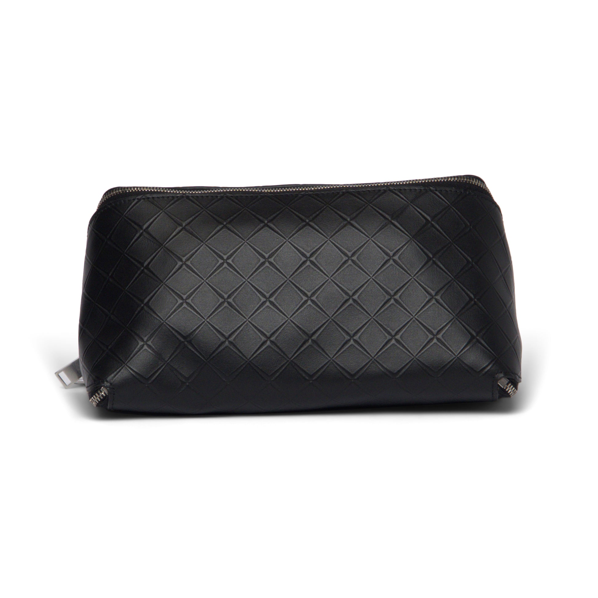 Introducing the Bottega Veneta Clutch, a statement of refined elegance and practical sophistication. Crafted from luxurious black calf leather, this clutch embodies the brand's legacy of impeccable craftsmanship. The sleek zip-around closure ensures security while maintaining a streamlined silhouette. Adorned with silver-tone hardware, each detail reflects a commitment to quality and timeless design. Ideal for day-to-evening transitions, this clutch is a versatile companion that complements any wardrobe with effortless style. Elevate your accessory collection with Bottega Veneta's signature blend of Italian craftsmanship and contemporary flair.Bag Material - Calf LeatherBag Dimensions - 8.97 x 4.68 x 4.29Bag Color - BlackBag Hardware Color - Silver-ToneBag Closure Type - Zip-AroundMSRP - 804.00