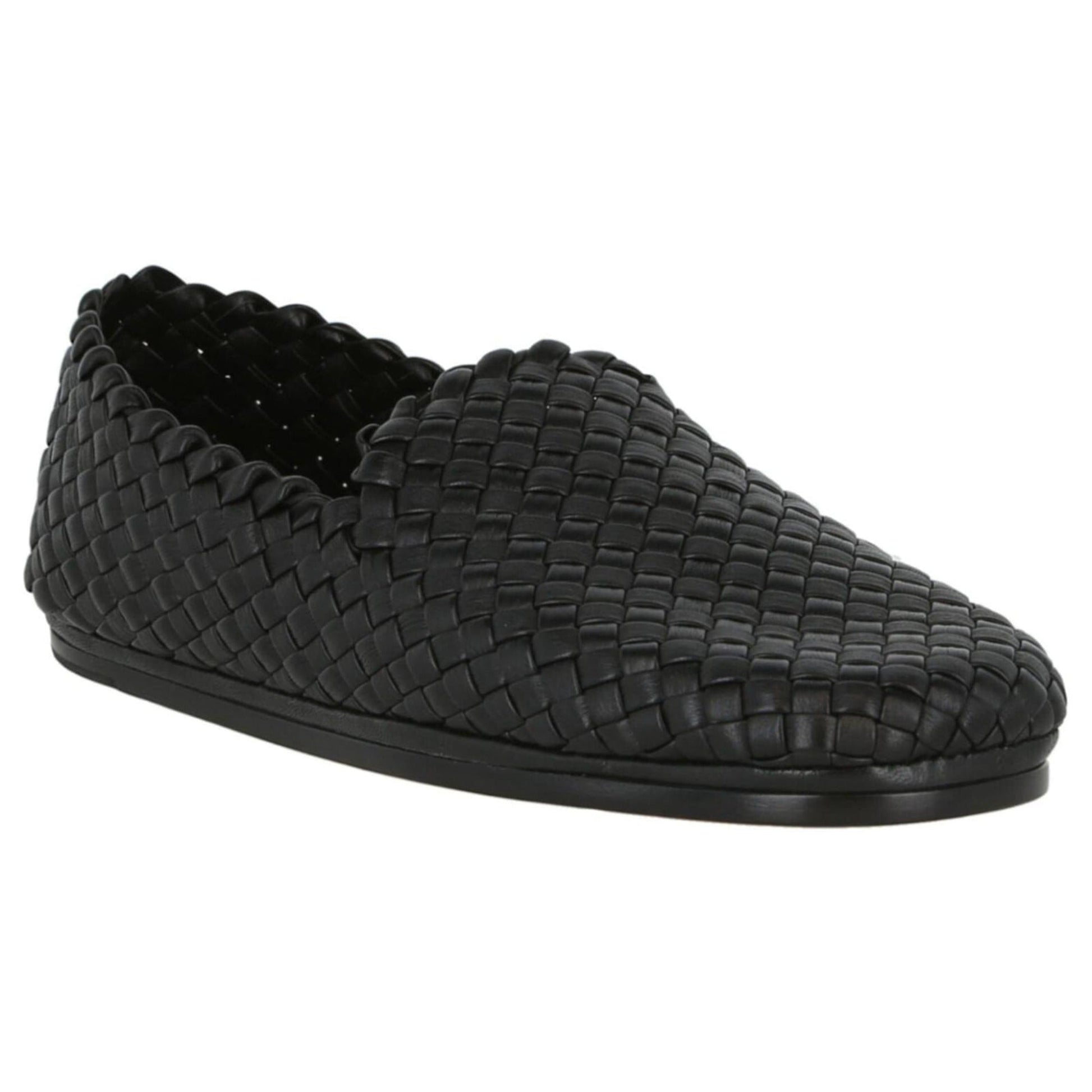 The Bottega Veneta Men's Loafers feature a classic round toe and a distinctive woven leather upper, combining traditional style with modern sophistication. These loafers are crafted with meticulous attention to detail, reflecting Bottega Veneta's dedication to luxury and craftsmanship. Ideal for both formal and casual settings, they offer a refined yet versatile option for footwear, perfect for those who appreciate understated elegance and superior quality.EU Shoe Size - 40Shoe Color - BlackShoe Material - LambskinShoe Toe Shape - Almond ToeShoe Closure Type - Slip OnMSRP - 1250.00