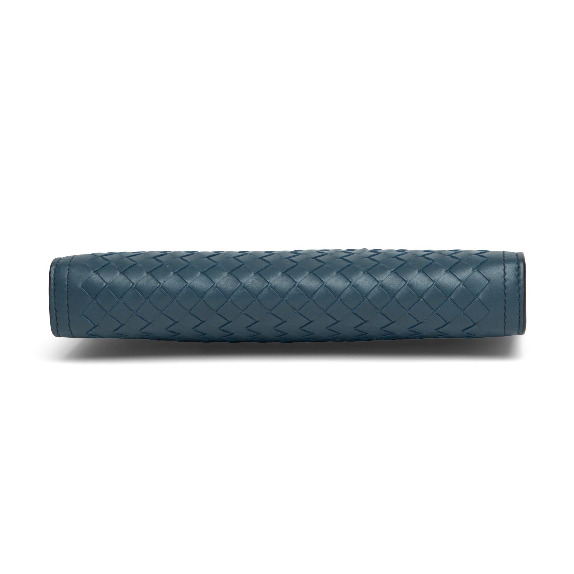 The Bottega Veneta Intrecciato Wristlet Bag is an elegant accessory that showcases the brand's iconic weaving detailing, highlighting their exceptional craftsmanship and timeless design. This sophisticated wristlet bag typically features practical elements such as card slots for organizing essentials like credit cards and a zip pocket for securing valuables. The intricate Intrecciato weave not only adds a touch of luxury but also ensures durability and a distinctive texture, making it a versatile and stylish choice for both casual and formal settings.Bag Material - Calf LeatherBag Dimensions - 8.58x5.46x1.56Bag Color - BlueBag Hardware Color - Matte-Black-ToneBag Closure Type - Zip-TopMSRP - 1158.00