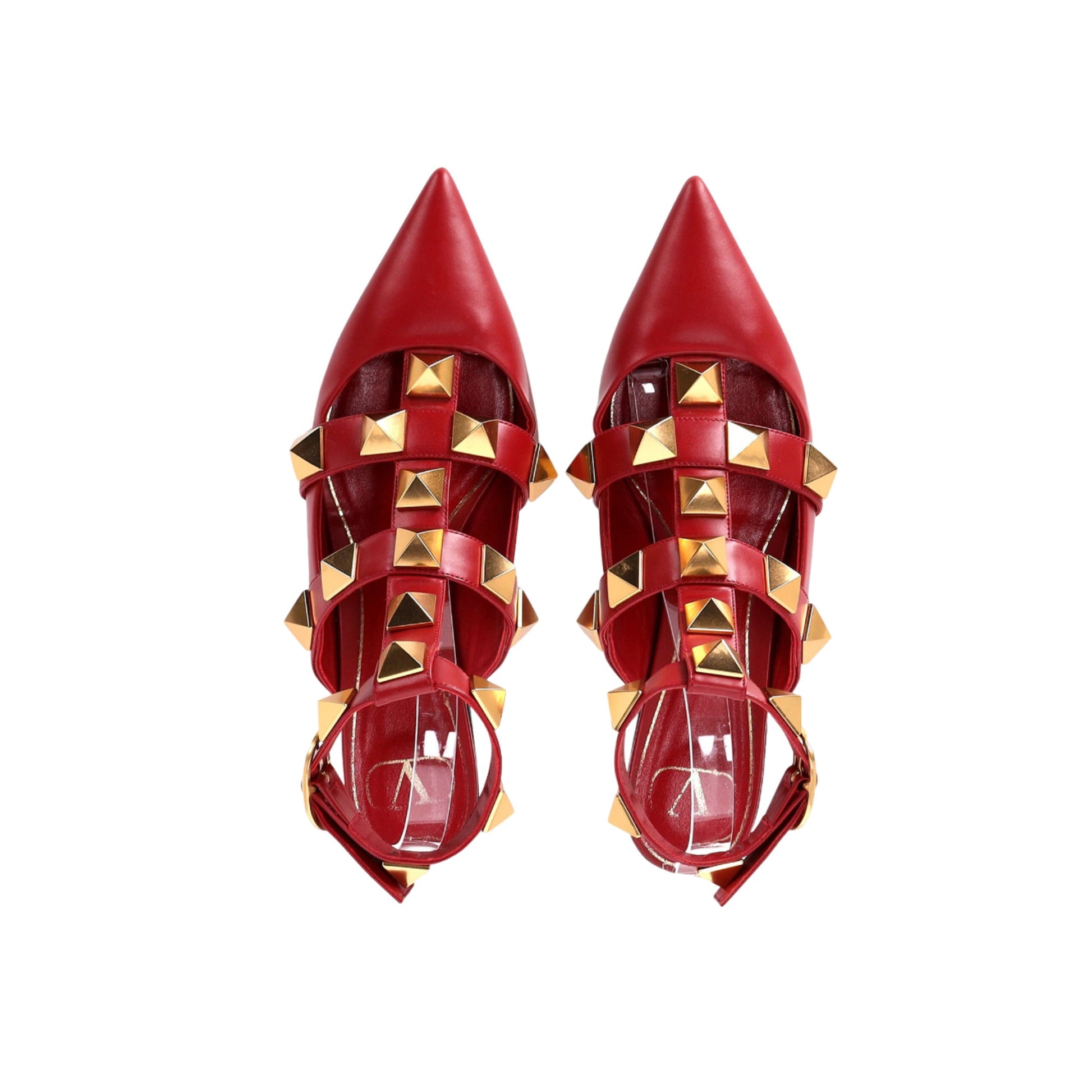 Add a vibrant touch to your wardrobe with the Valentino Garavani Roman Stud Ballet Flats in bold red. These chic flats are crafted from high-quality leather and feature the iconic Roman Stud embellishments, offering a striking contrast against the vivid red hue. The elegant ankle strap ensures a secure, adjustable fit while enhancing the sophisticated design. Perfect for making a statement, these Valentino Garavani ballet flats combine contemporary style with classic comfort, making them a standout addition to any fashion-forward collection.