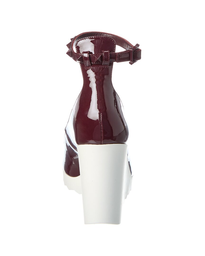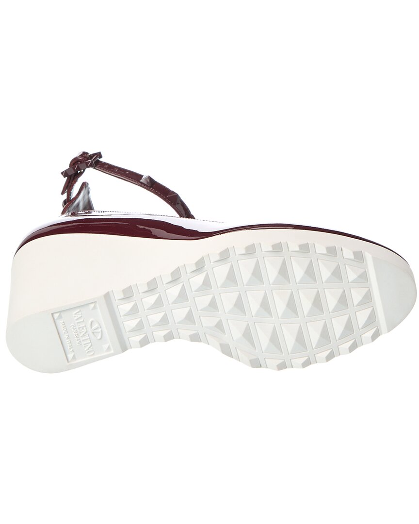 - Rockstud 100 Patent Wedge Sandal In Ruby Patent Leather And Tonal Hardware With Rockstuds And Contrast Platform