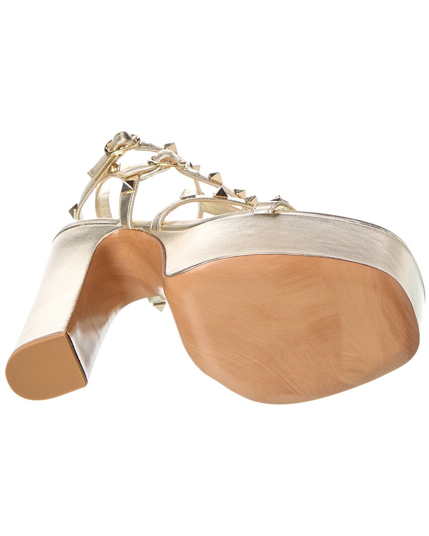 - Rockstud Caged 155 Leather Ankle Strap Platform Pump In Gold Leather With Platinum-Finish Rockstuds