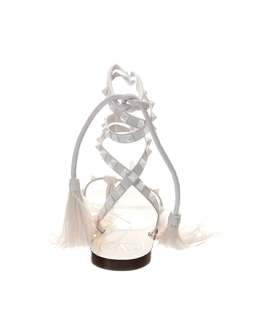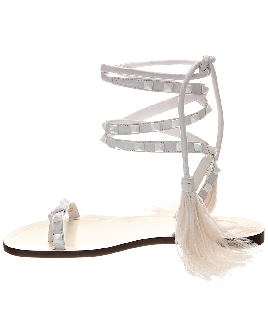 - Rockstud Leather Sandal In White Leather With Tonal Rockstuds And Feather Embellishments