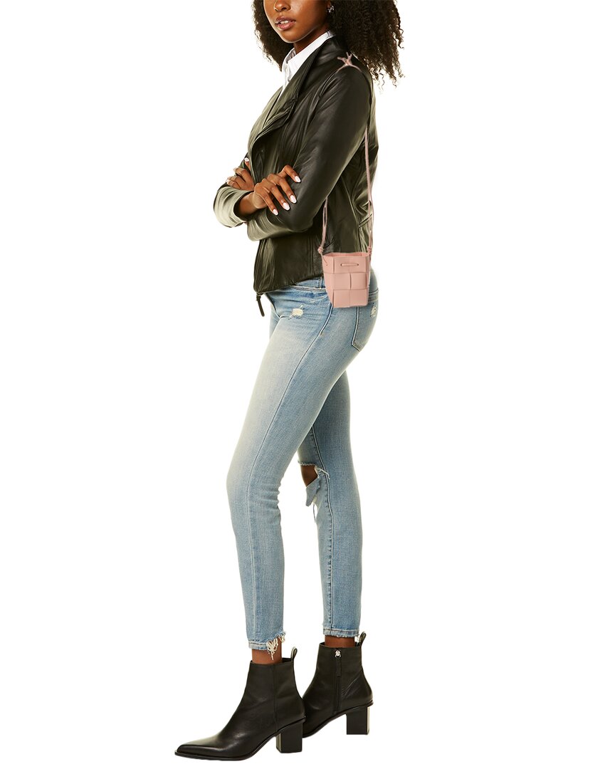 - Cassette Mini Intrecciato Bucket Bag In Pink Intrecciato Leather With Knot Accents