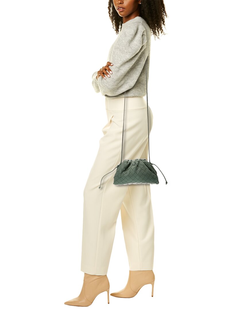 - The Pouch Mini Intrecciato Leather Crossbody In Light Sage Intrecciato Leather