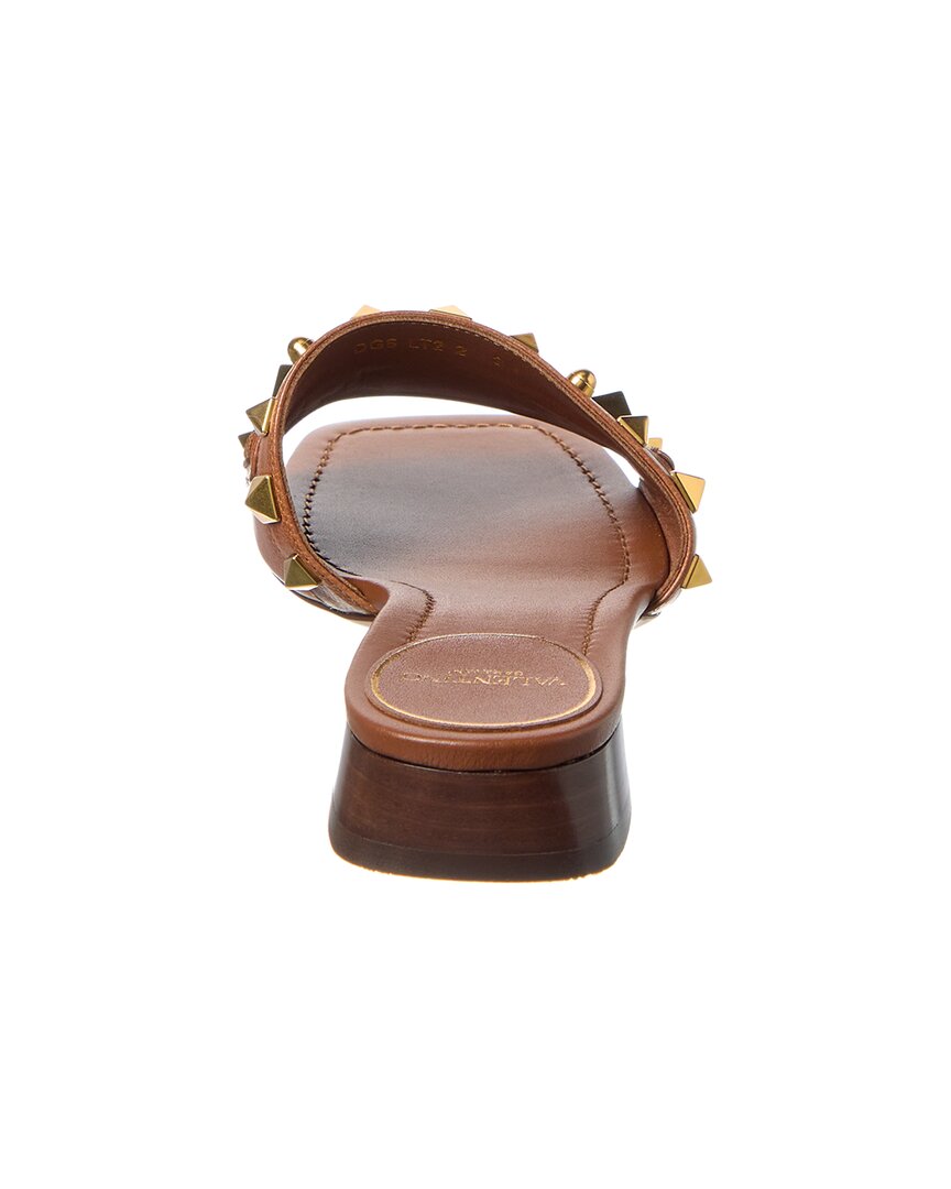 - Rockstud 20 Leather Sandal In Brown Leather And Gold-Tone Hardware With Rockstuds And Vlogo Accent