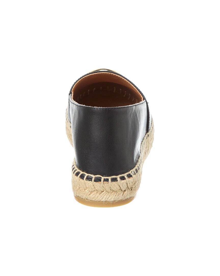 - Pineta Leather Espadrille In Black/White Leather And Gold-Tone Hardware With Cap Toe, Logo Accent And Jute Platform Black Leather