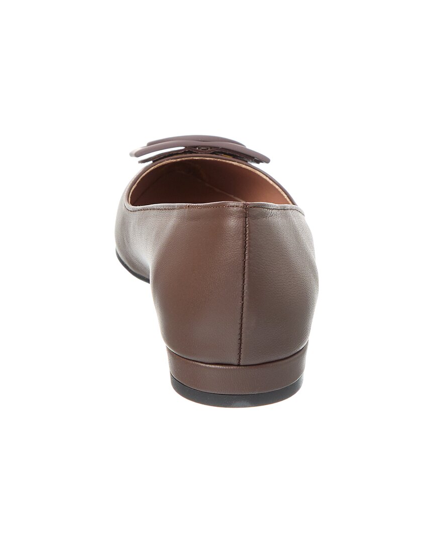 - Flora Leather Flat In Brown Leather And Gold-Tone Hardware With Logo Accent Brown Leather
