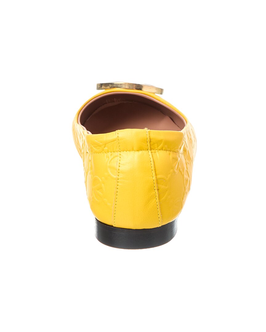 - Calliope Leather Flat In Yellow Leather And Gold-Tone Hardware With Logo Accent Yellow Leather
