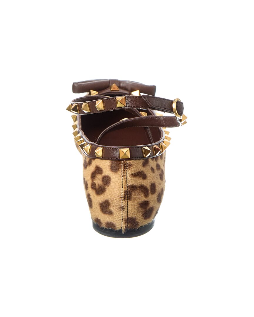 - Rockstud Bow Haircalf & Leather Flat In Brown Printed Haircalf And Leather With Padded Bow And Gold-Tone Rockstuds