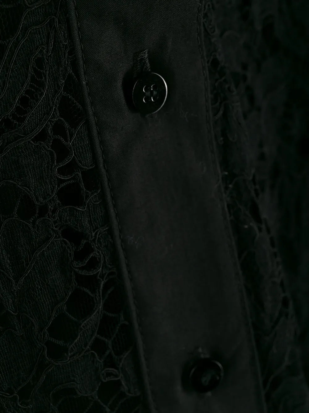 In our dictionary, LBD stands for both Little Black Dress and Lace Black Dress. This stretch cotton blend short button-up lace dress from Valentino just happens to combine the best of both. The more you learn! Featuring a front button fastening, a classic collar, a bib to the chest, a floral lace pattern, a flared style, button cuffs and a sheer construction.