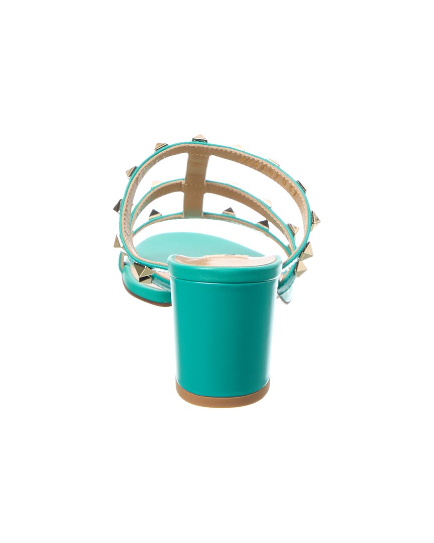 - Rockstud Caged 60 Leather Sandal In Teal Leather With Platinum-Finish Rockstuds