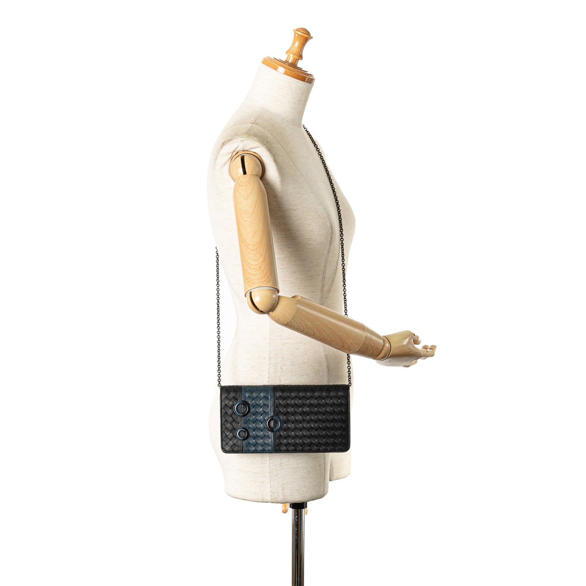 Black Bottega Veneta Intrecciato Wallet On Chain Crossbody Bag
